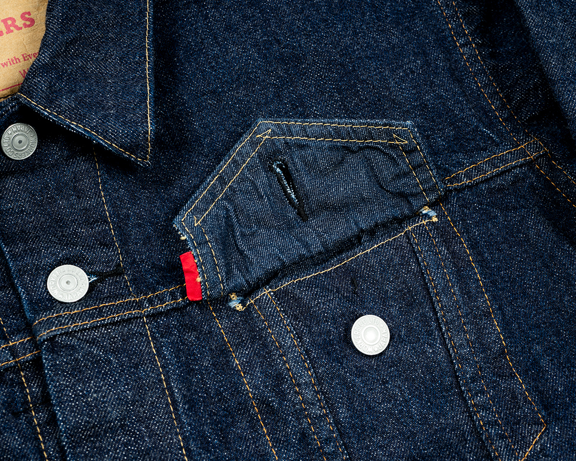 サードの特徴。ヨークに流し込んだポケット+前身頃切り替え。実は、ここの切り替えはオリジナルにあまり絞りは入っていません。当然、WORKERSはファーストがベースなので絞りは無し。単純に切り替えているだけです。