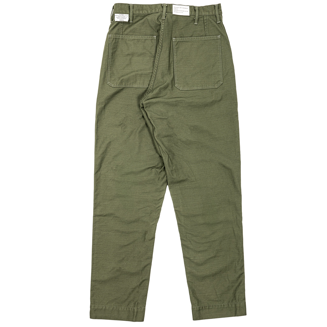 バックサテンはいつものベーカーでおな じみ。元々は15 年ほど前に、私がとある生地屋さんのとある人に、オリジナルのMIL-C-10296J というスペックを参考に作ってもらったもの。生地の重さおよび、1インチ当たりの糸の本数、糸の交差の仕方。糸はカード糸を使う、といったスペックに書いてる事を参考にして、 当時は硫化染料で生地染しました。