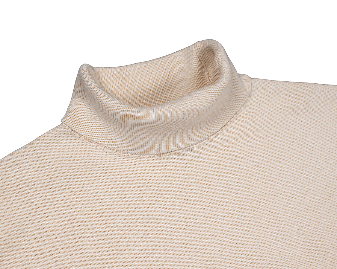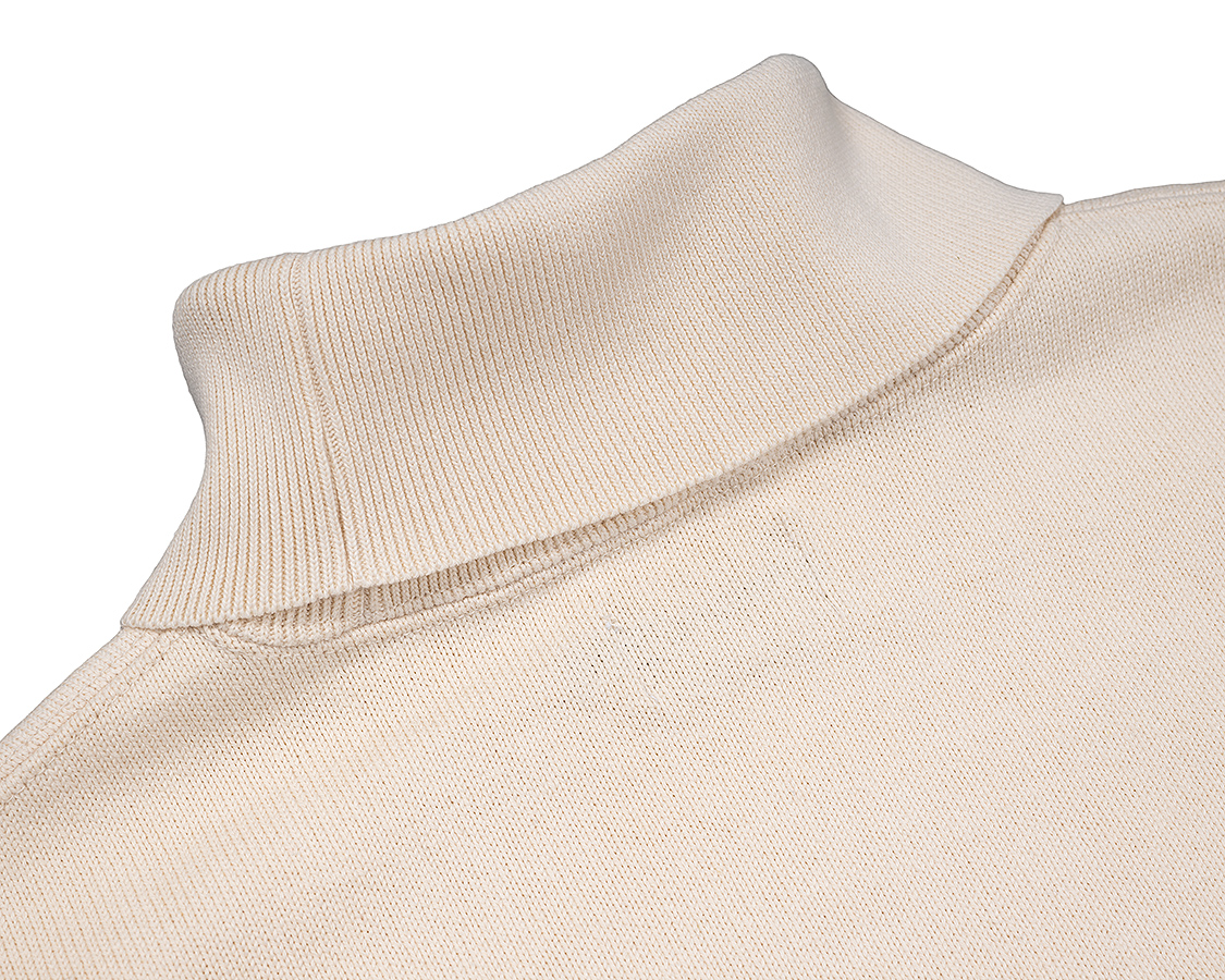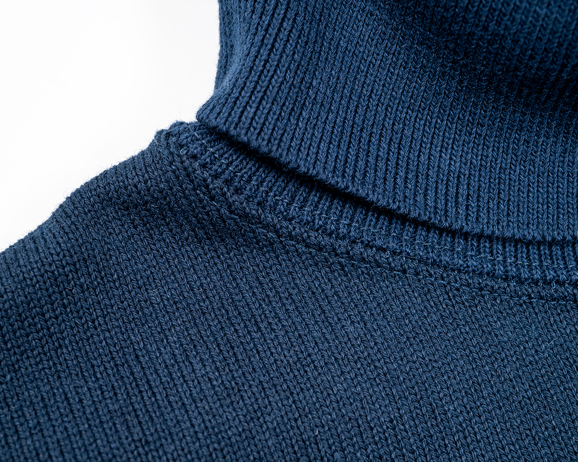 Royal Air Forceの古着セーターや、映画ダンケルクでパイロットが着ているロールネックのセーターを見て着想を得ました。