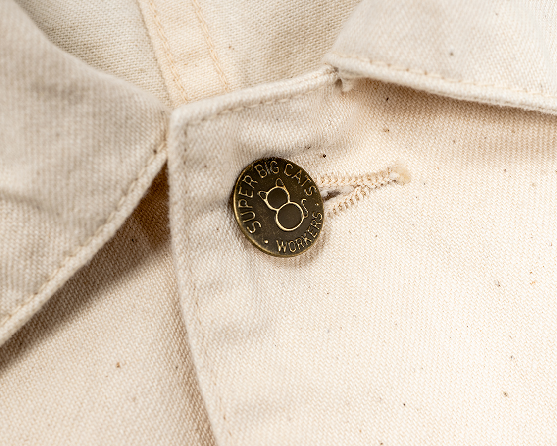 見本は後ろ中心のネームを付けませんでしたが、量産はWork Pantsと同じ大型ラベルをたたきつけます。