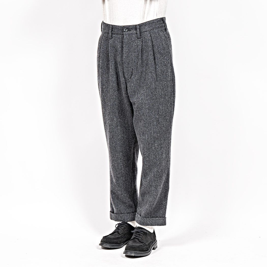 Wool Cotton Tweed は今季、WORKERS で別注したヘリンボンツイード。タテにウール、ヨコにコットン。9 オンスほど。 ツイードは中々「これだ!」という生地が生地屋さんのラインナップに無いので別注。せっかくやるなら、単純にウール 100よりヨコ糸をコットンにしてちょっとどっしり感が欲しかった。ただ、思ったより軽くできました。でも、これはこれで着やすくて良し。
