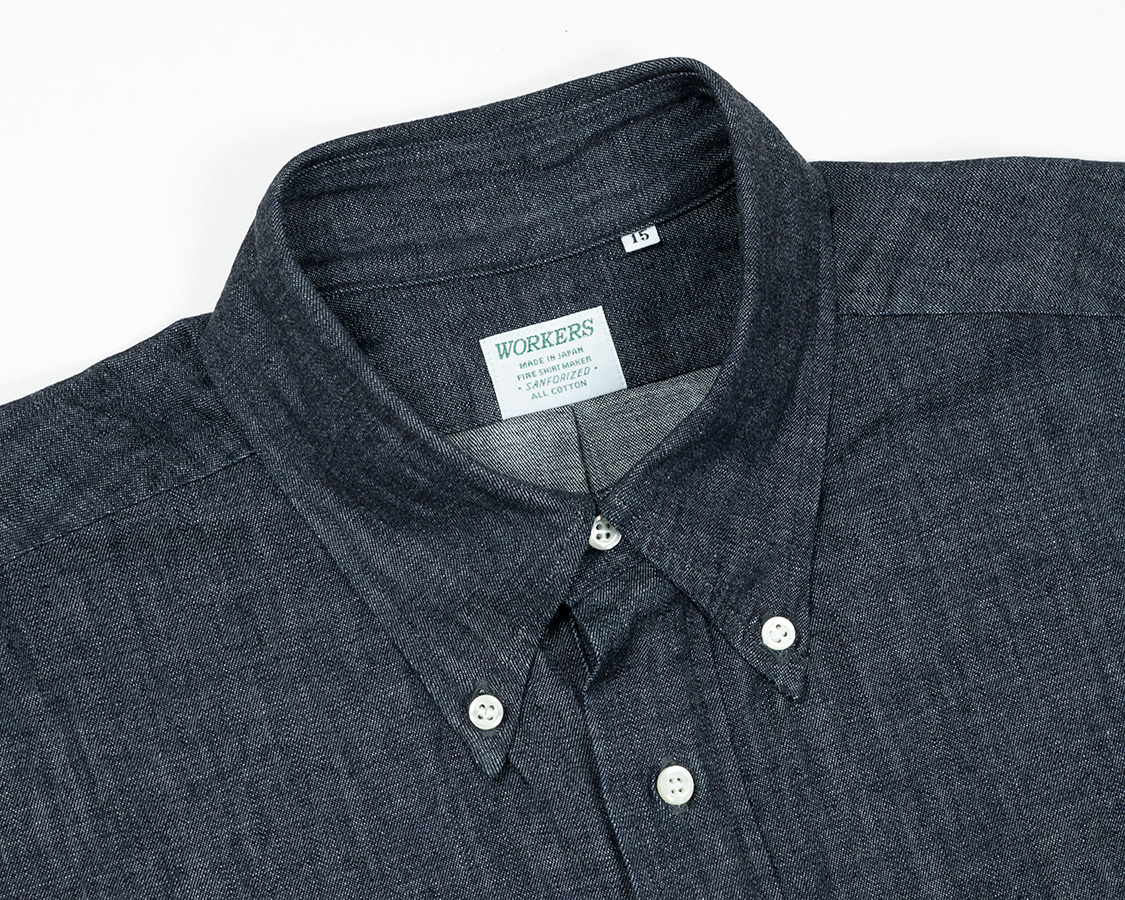 が、IVYといえばプルオーバーボタンダウン。ポップオーバーなんて言ったりもします。今までは、夏用にマドラスや薄手のオックスでばかり作っていたので今回は厚手生地で。写真は7.5オンスのデニム。シャツとしてはかなり厚手。