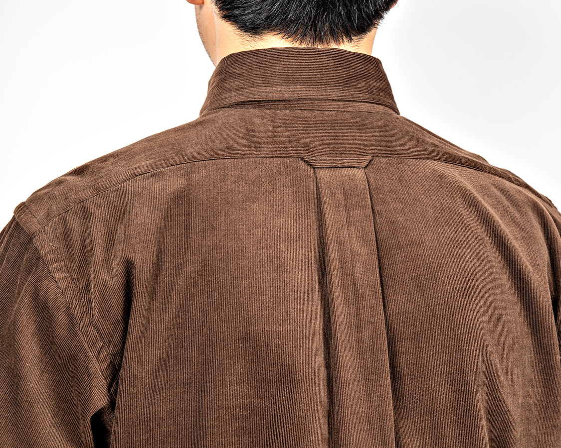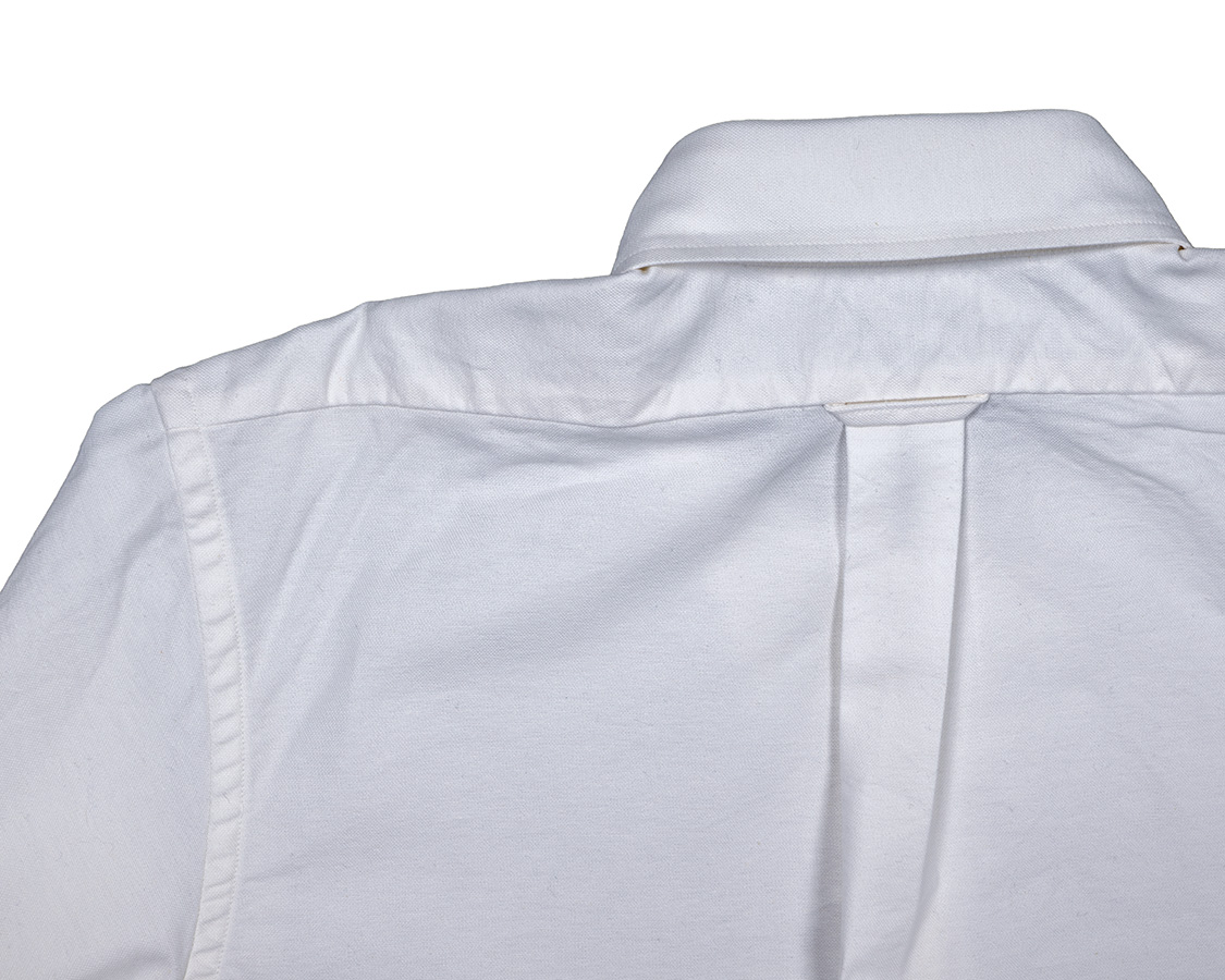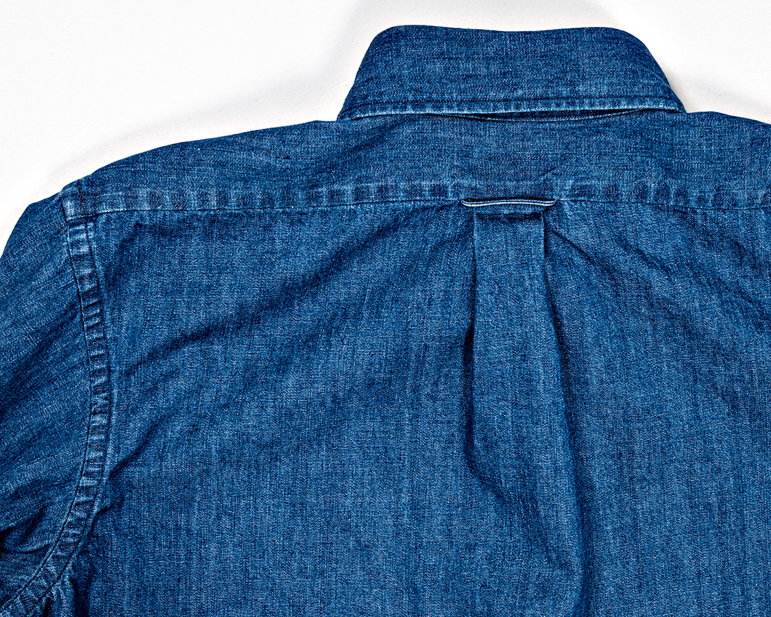背面、センターにハンガーフックあり。実際にハンガーにつるかは微妙ですが、アイビー的ディテールですね。