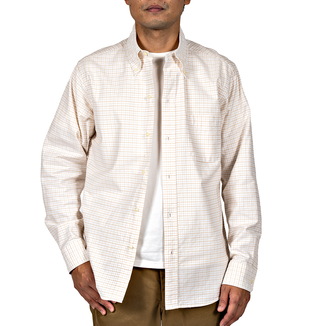 それに対し、Modified BDはもう少し丈が短い、袖も細い、袖口ボタン位置もごく普通の位置。タックインしても、前をあけてアウター的にも着られるサイズ感を目指しています。 |