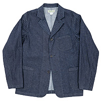 ・Lounge Jacket、見返しを身頃にたたきつけて、「カバーオール」的なジャケット。洗って育てられるジャケット。