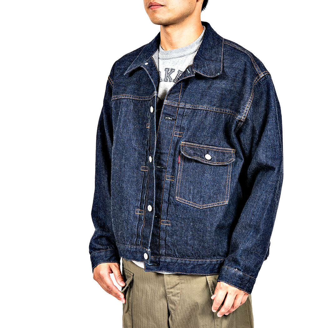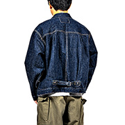 大きいサイズのGジャンを、幅の狭いセルビッジデニムで作るため、背中に割りのある仕様。。