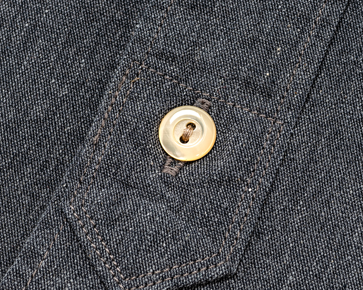 茶蝶貝の独特な色身。これが、インディゴ、ブラック、生成り、どれにも違った対比になって綺麗。