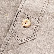 二つ穴、生地のナチュラルな雰囲気にボタンも合わせたい。真っ白でも、黒でもない、ということで茶蝶で作りました。