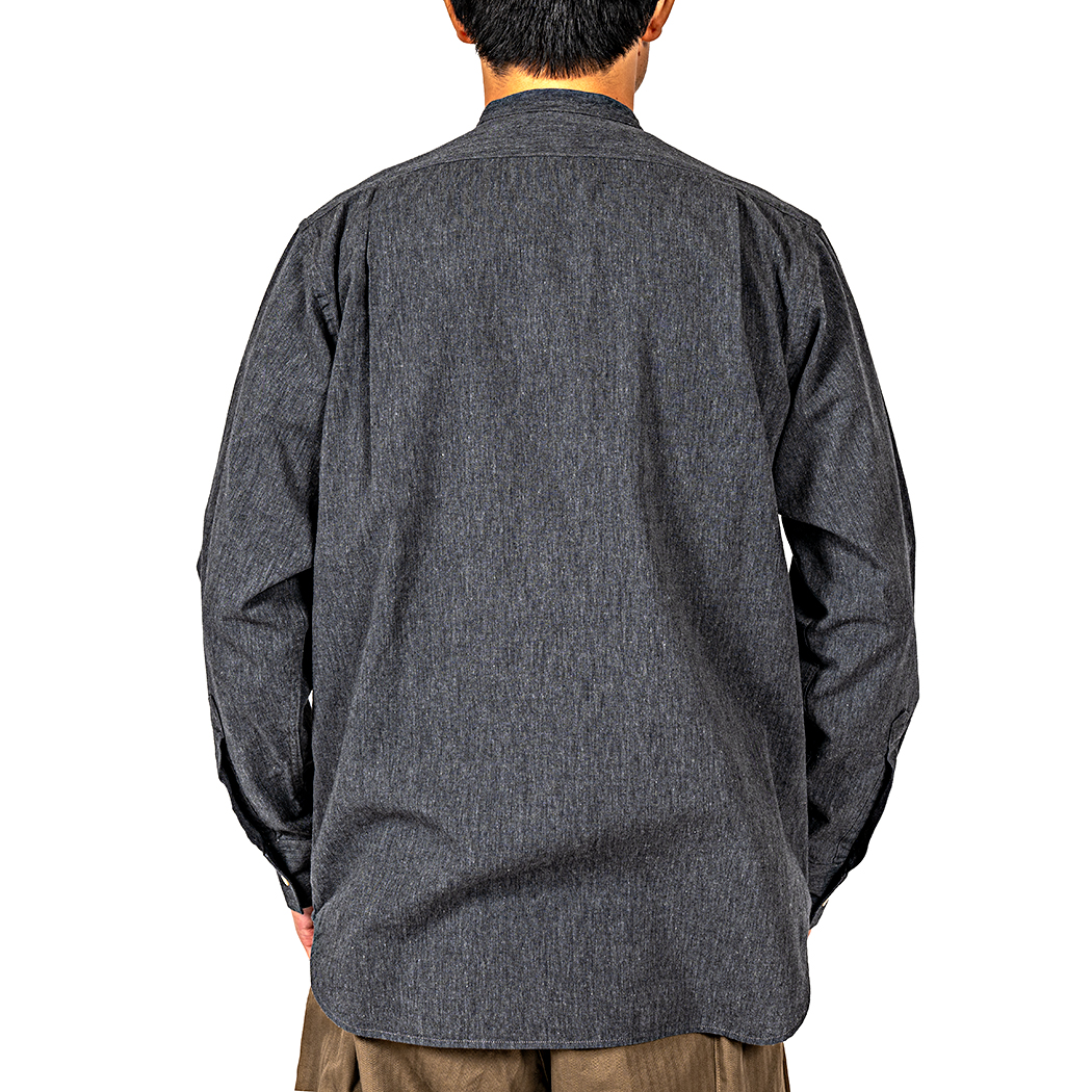 ただ、襟がジャケットと同じ太さだと太すぎてバランスが悪いので、ビンテージのバンドカラーシャツを参考に幅を細く修正。