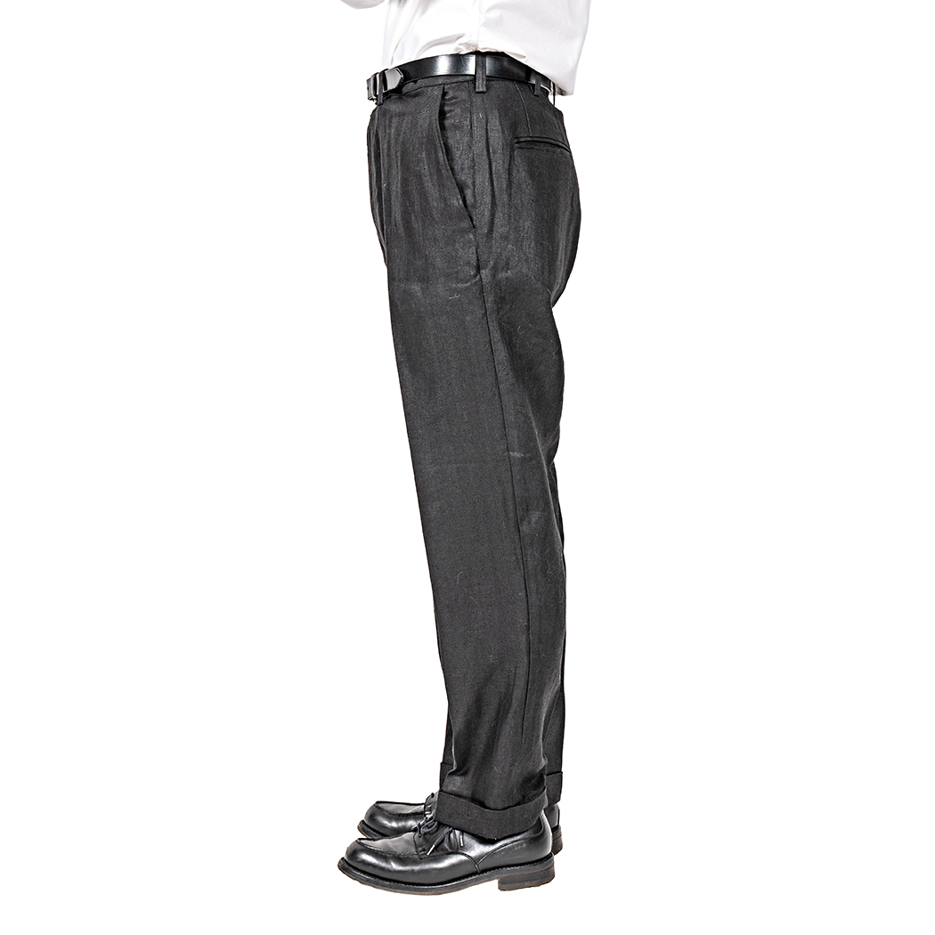 Moonglow Jacket とセットアップになるトラウザーズ。素材、「シワを楽しもう」がフレンチリネン。リネンはシワが出てなんぼですが、そのシワが汚く感じない。ジーンズのヒゲやハチノスが「良いな」と感じるのと同じ。着こんで、自分の体に沿ったシワが美しい。