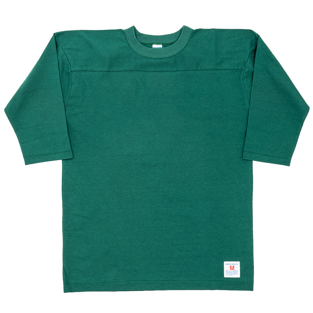 フットボールT。 ビンテージを集めパターンを研究。肩部分に縫い目が無い。肩先で謎の出っ張りがある。特徴はつかめたのですが、実際に着て良いバランスにするのが難しく、サンプルを4 回も作り直ました。やはり、WORKERS、まだまだカットソーの型紙の蓄積が足らないです。良い勉強になりました。