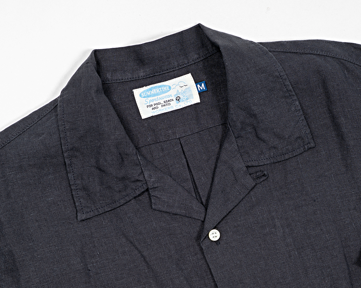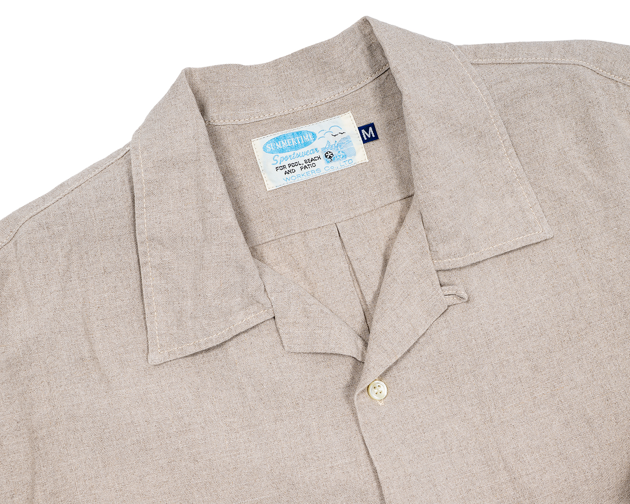 シアーズ・ピルグリムの古着 から作ったネーム。もう10年以上前ですが、出来上がった時はうれしかった。いまだに、パテオの下で夏休みなんかしたこと無いですが、買っていただくお客様にはぜひ、夏のバカンスでお使いください。