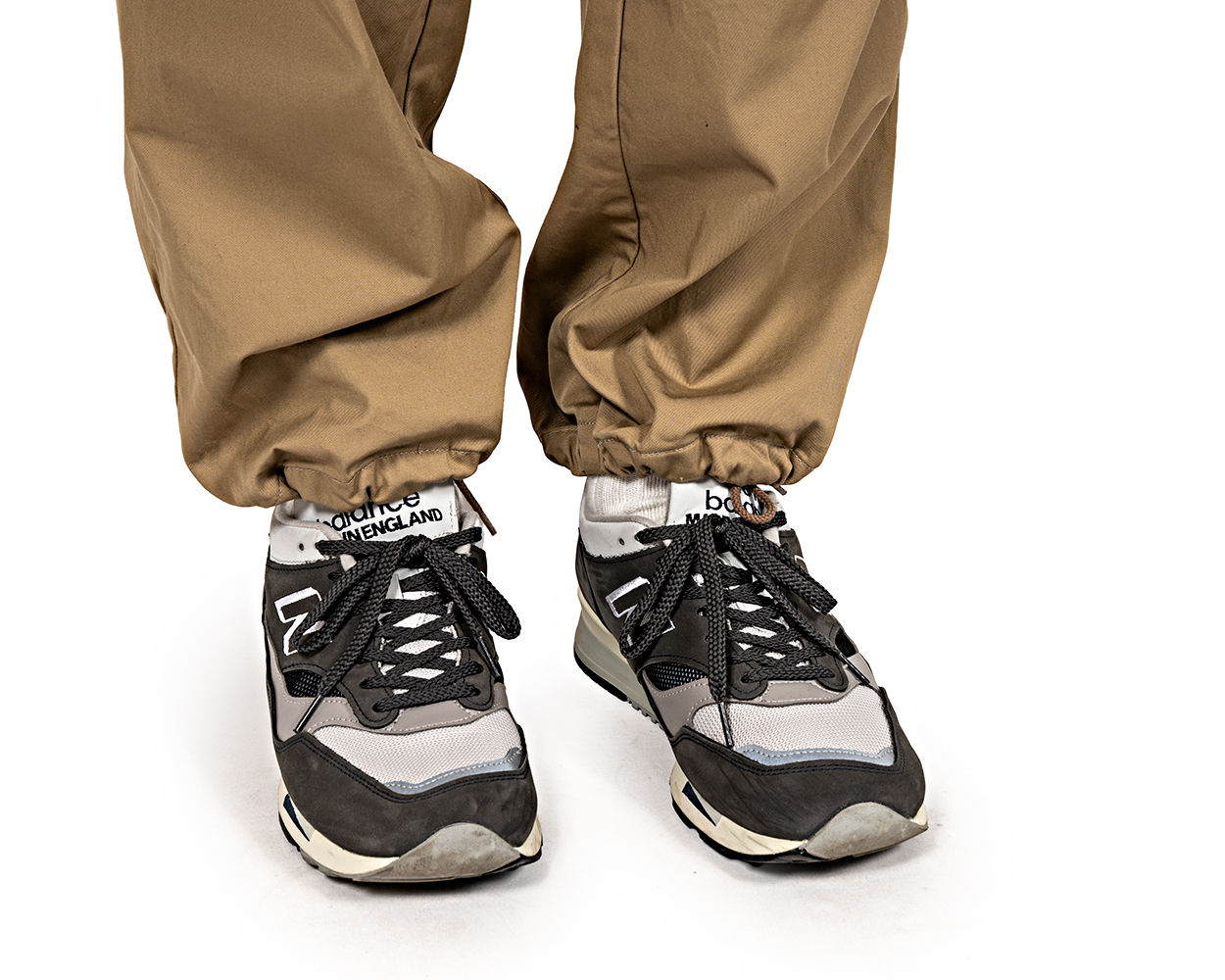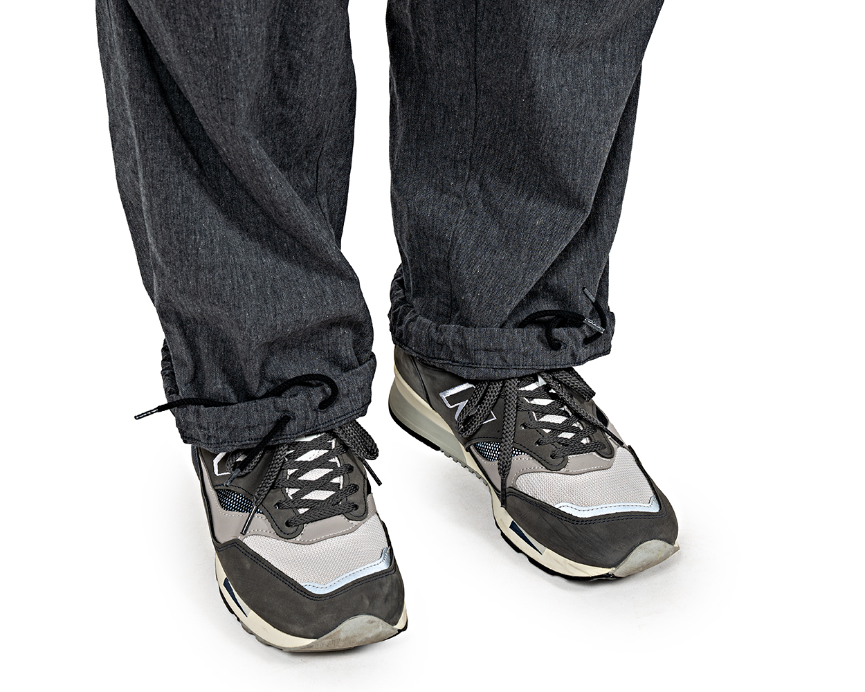 裾、絞らずに折って穿くとこんな雰囲気。さらに、紐を抜いてしまっても良いと思います。