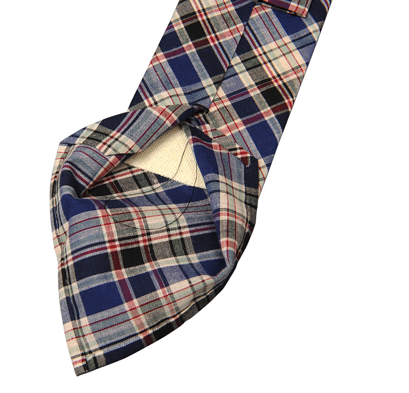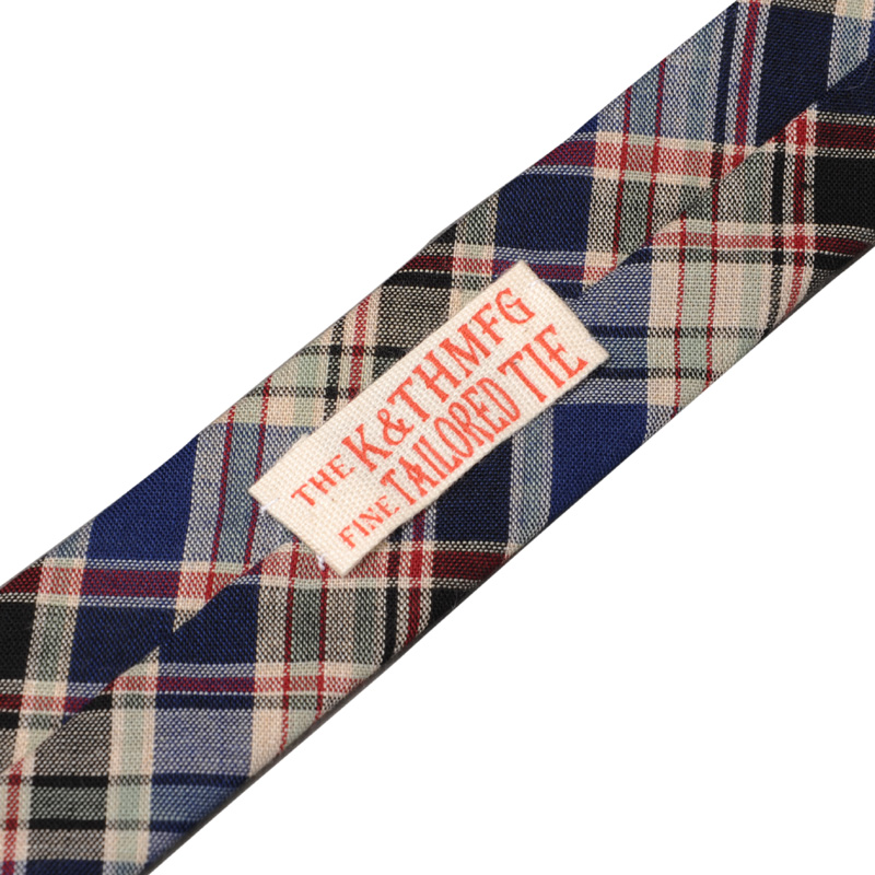 大剣の裏に見えるループ状の糸、これがハンドメイドの証ともいえる糸の遊びです。もともとネクタイはバイアス取りした生地で作成します。これは、首に巻いてほどけてこないように生地の伸縮を利用しているからです。