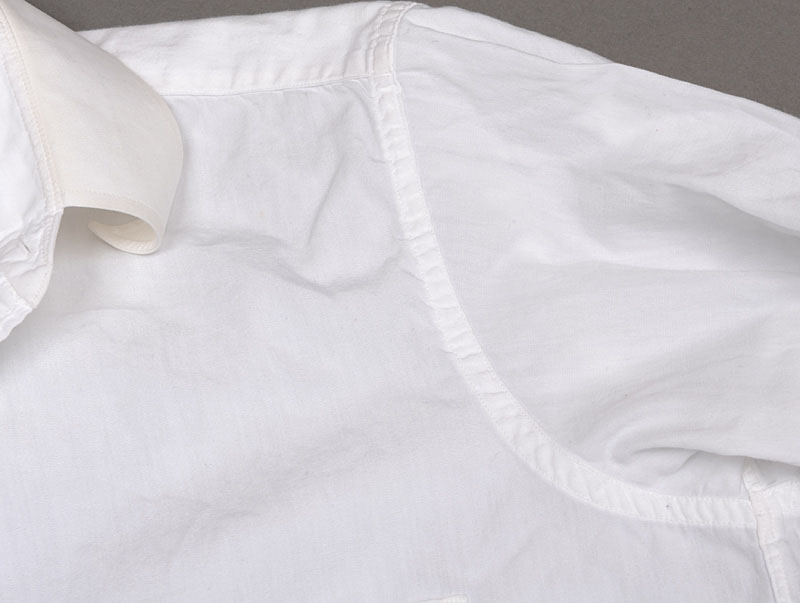 現代の単なるYシャツとも、シャツ専業メーカーの完全に工業化されてパターンミシンなどを駆使して作られたボタンダウンシャツとも、イタリア製などハンドメイドを多様したシャツとも違う。