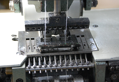 それを、折り山側を縫うが為には、押さえ金も、送り歯も、すべて当たる部分を切ったものを使わなければなりません。