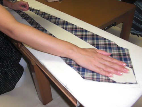 工程としては、それほど多くないのですが、やはり芯の据え付けやら、アイロンやらにコツがあるのは、帽子と同じです。