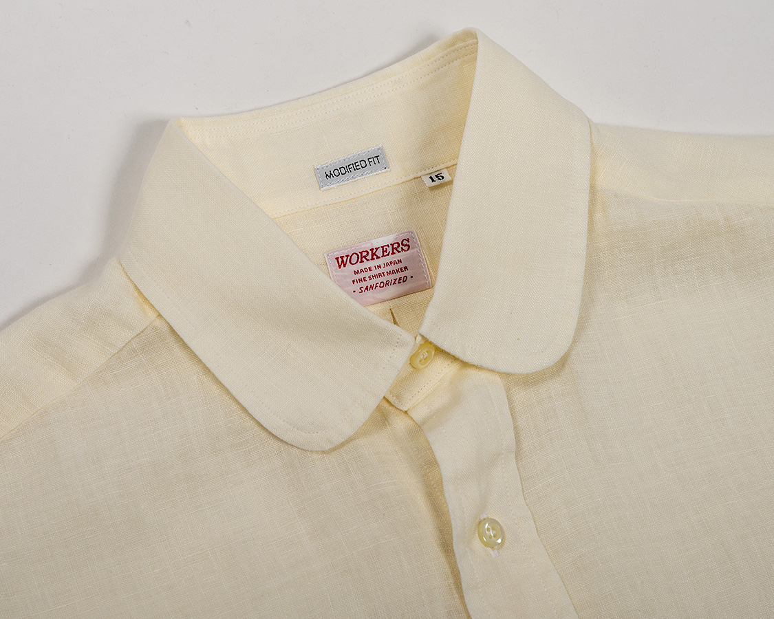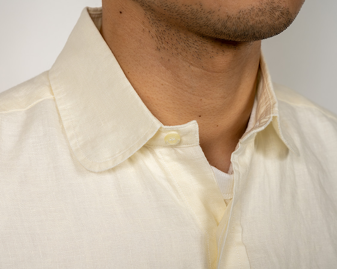 Modified Round Collar Shirt, Spence Bryson Linen Ivory |
