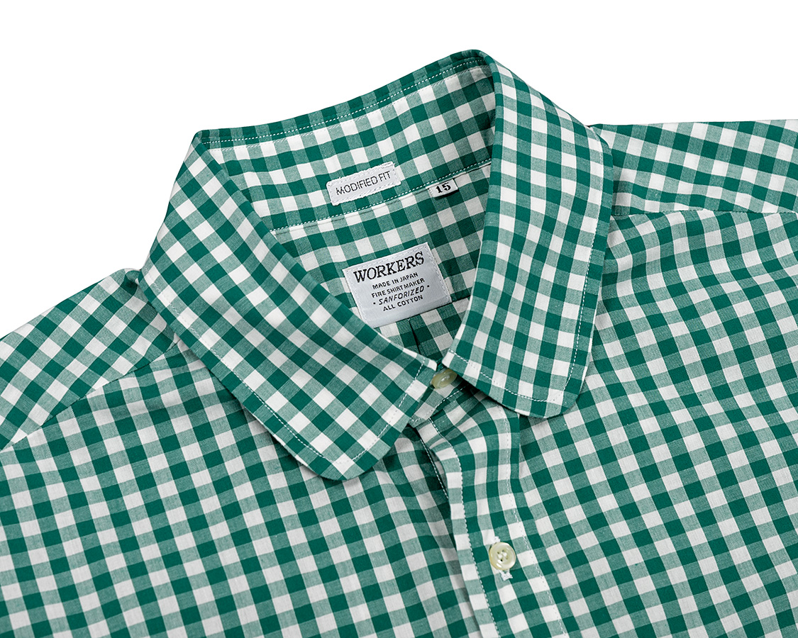 | Modified Round Collar Shirt, Poplin, Green Check |