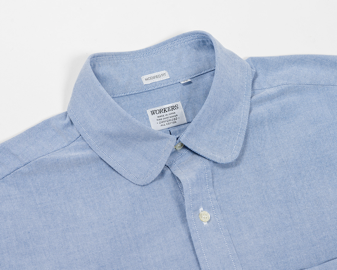 | Modified Round Collar Shirt, Blue Supima OX |