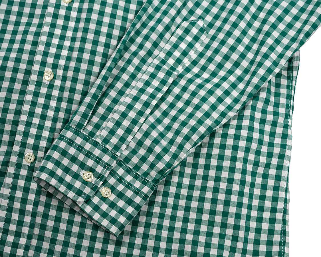 | Modified Round Collar Shirt, Poplin, Green Check |