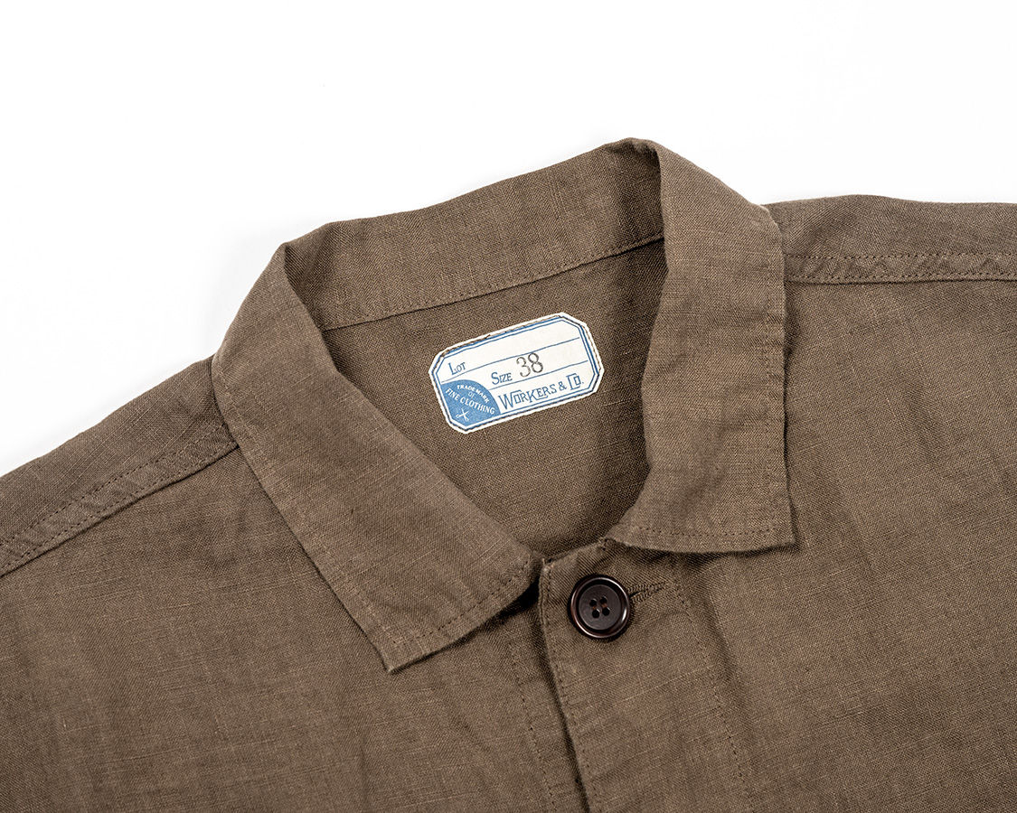 自分で21年版を着てみて「テーラー襟だと、どんなに素材がラフでもちょっとかっこよすぎるな」と感じました。あれはあれで良いのですが、さらに、ワークジャケットというか、カバーオールというか、ラフな雰囲気にしたくて襟のデザインを変更しました。