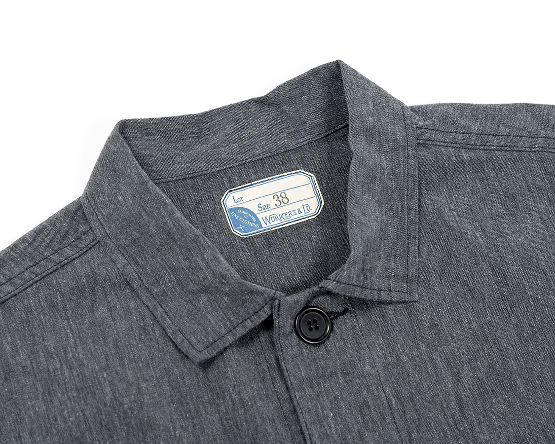 「ブラックシャンブレー」ですが、私にとっては春夏素材、ウールのトロピカルがコットンに変わったように感じる生地。とにかく涼しい、汚れても目立たない。FWP Trousersでも定番で使っていて、毎シーズン自分も夏は本当によく穿きます。当然、毎日穿いてれば、コーヒーがちょっとこぼれたり、醤油がついたり。それでも、洗えばほぼ目立たない、乾きも良い。実体験から、夏におすすめの生地です。