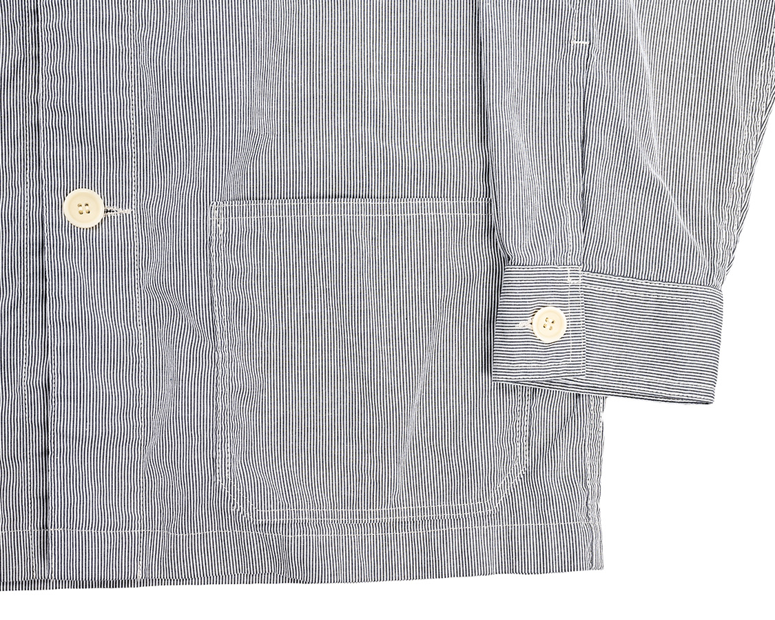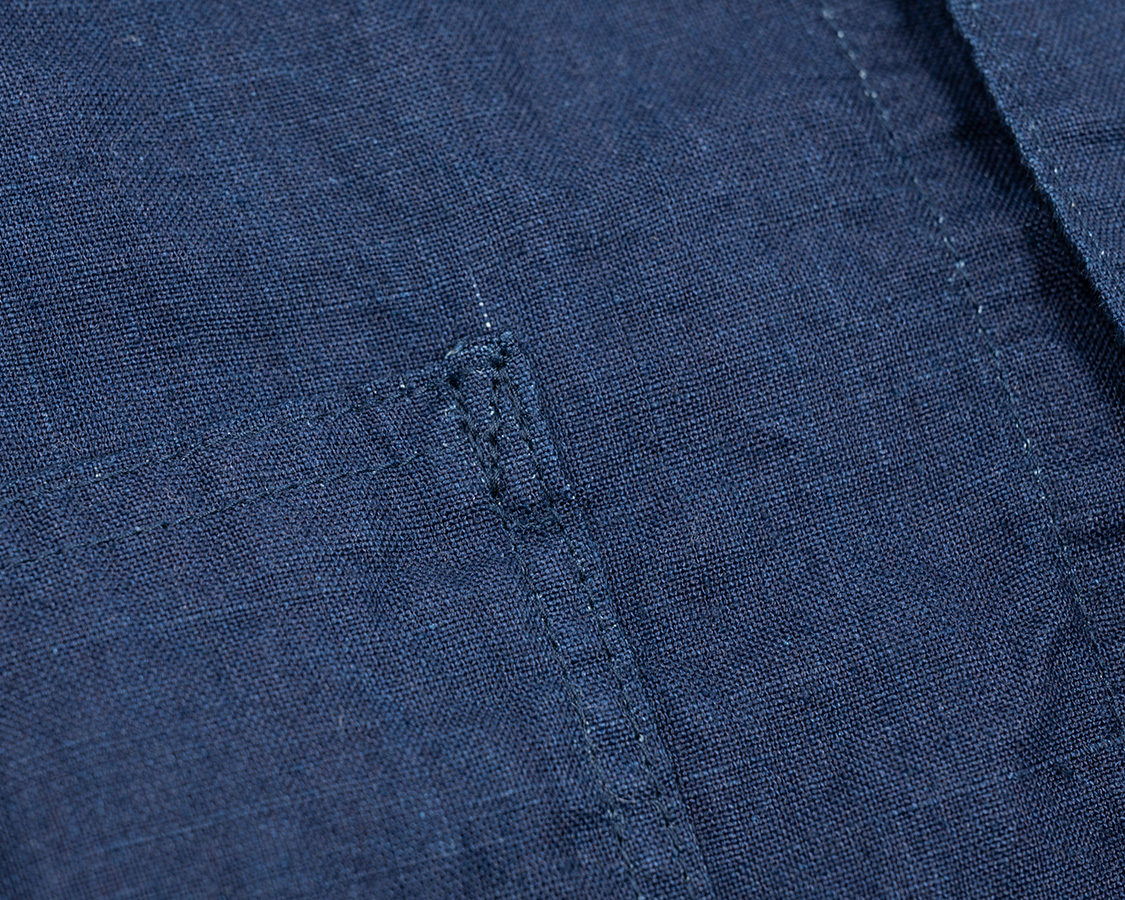 ポケット口はステッチでカンヌキ。素材がカバーオールのように分厚く無いので、カンドメで止めつけてしまうと針目が多く通り過ぎて、かえって強度がありすぎて生地をダメにするかな?と思い、ステッチのカンヌキにしています。
