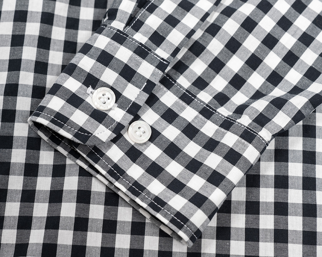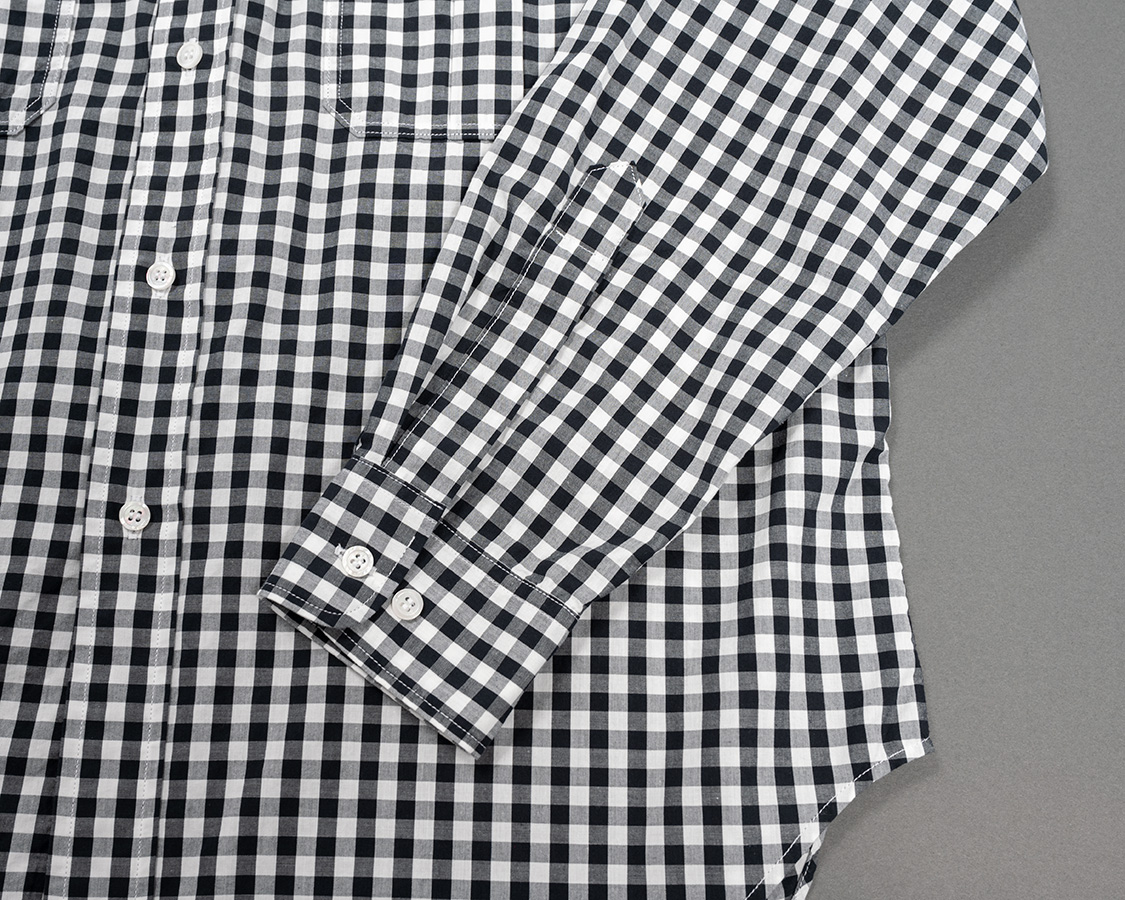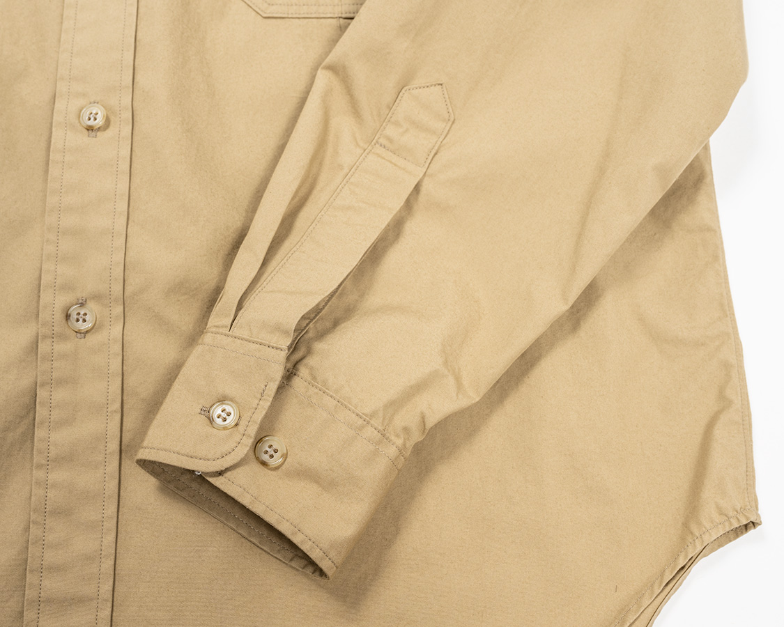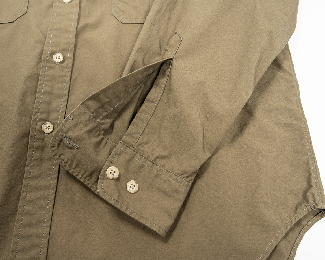 袖口、長めのプラケットで袖をまくりやすく。見えませんが、裏は断ち切り部分が見えないきれいな始末。