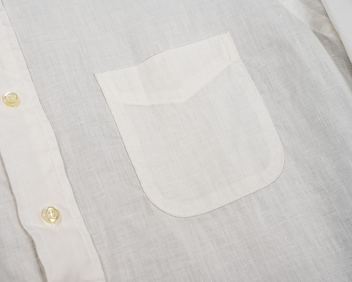 シングルステッチでプルオーバー仕様。今回、切り込みの入れ方、前立ての幅を工夫して、今まで以上に強度を出せている「はず」です。ただ、開きどまりは引っ張ればどうしても穴が開きそうになる、だからゆったり作っています。