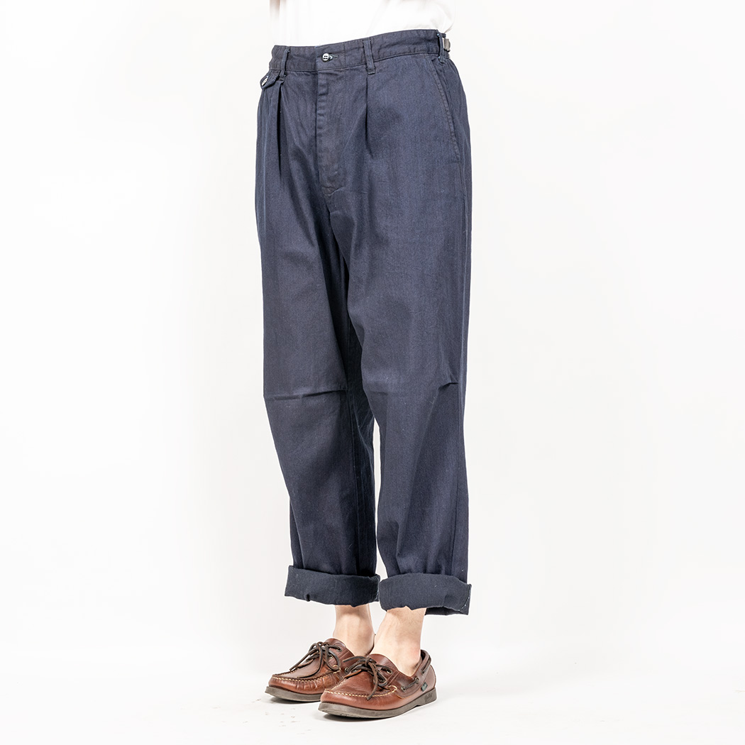 夏にはける、ゆったりと、薄手で、ウェスト調節にベルトの要らないパンツ。そこで、Fatigue Trousers を作ったのですが、 脇のカーゴポケットは着る機会を選ぶ。そこで「Wituout Cargo Pocket」が始まりました。
