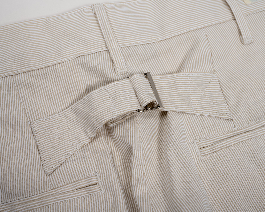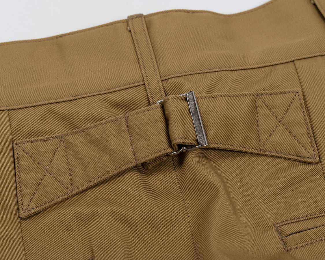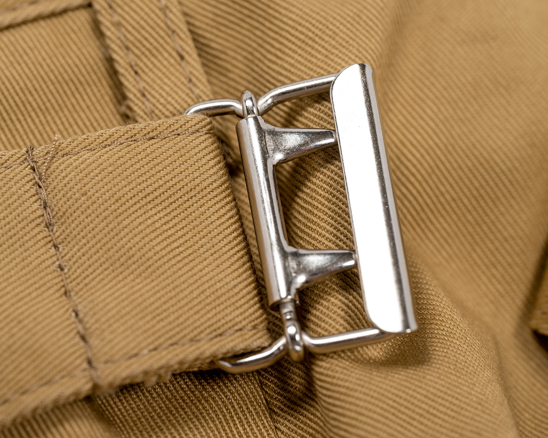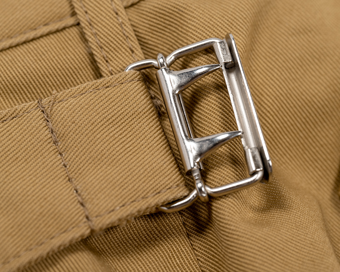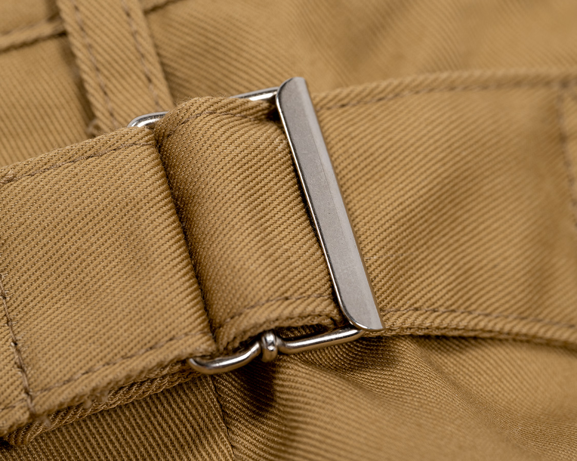ウェストの調整はベルトが必要なのでベルトループもつけました。ちょっとサンプルはループが長かったので、量産は1センチ程短くします。