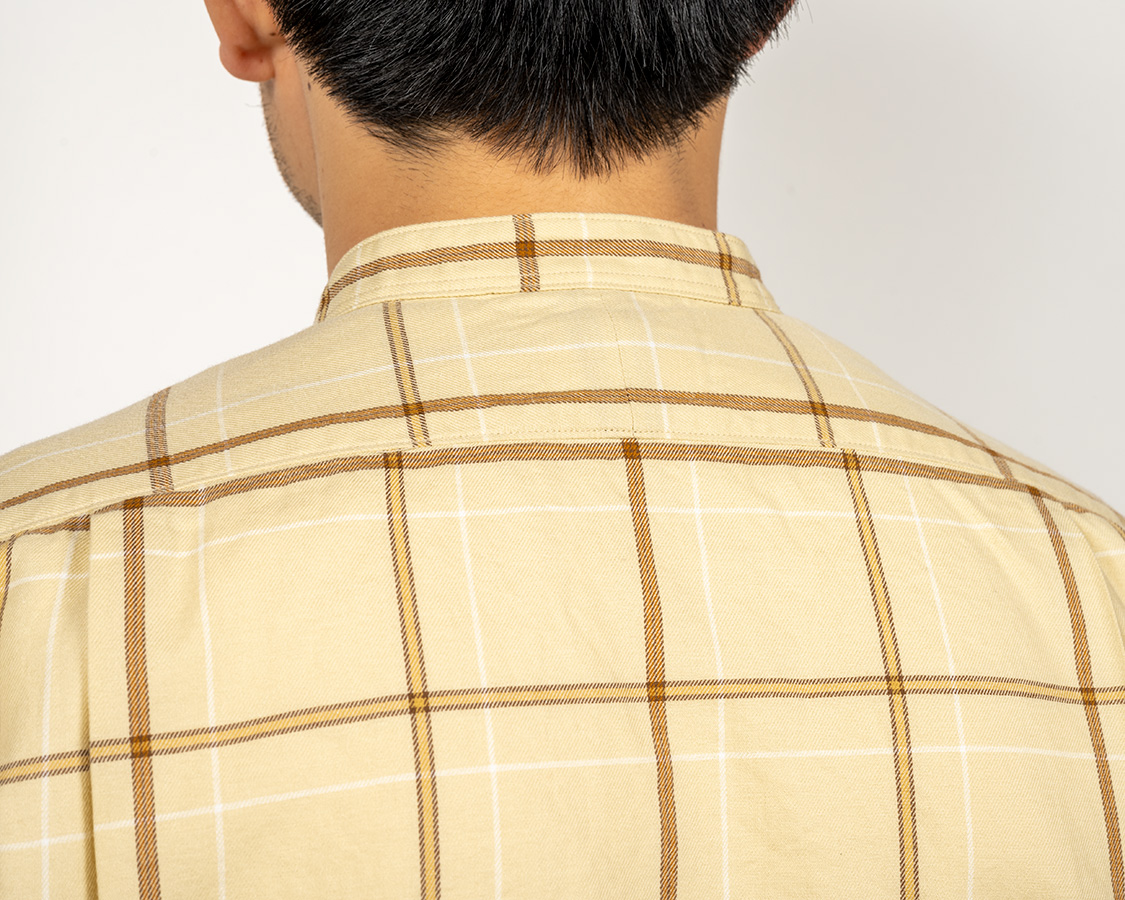 Band Collar Shirt, Check Twill
