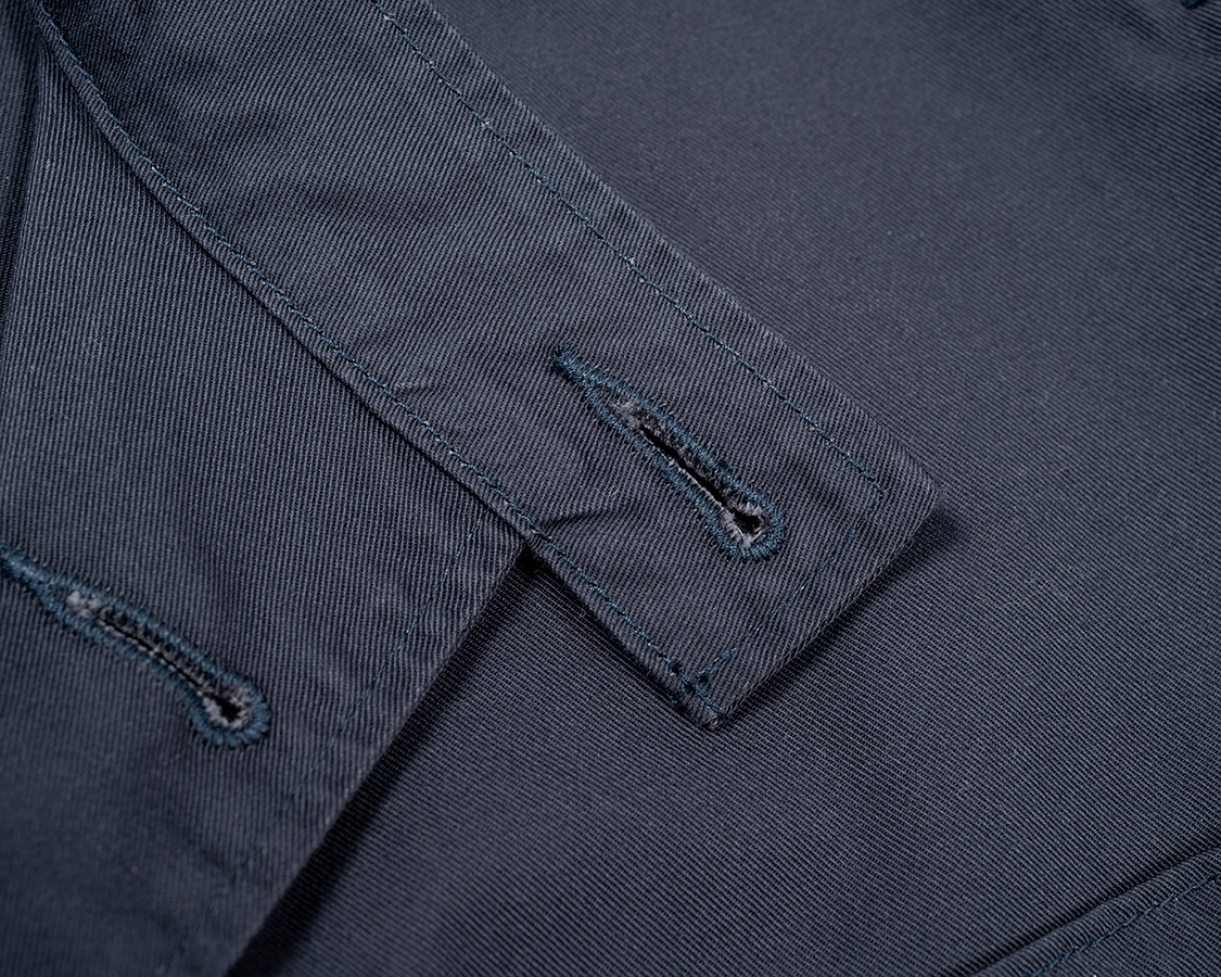 チンストラップ部分のアップ。デニムはいわゆるインディゴデニムとは違う硫化染めも入った物。色味が違うのがアップで見るとよくわかります。