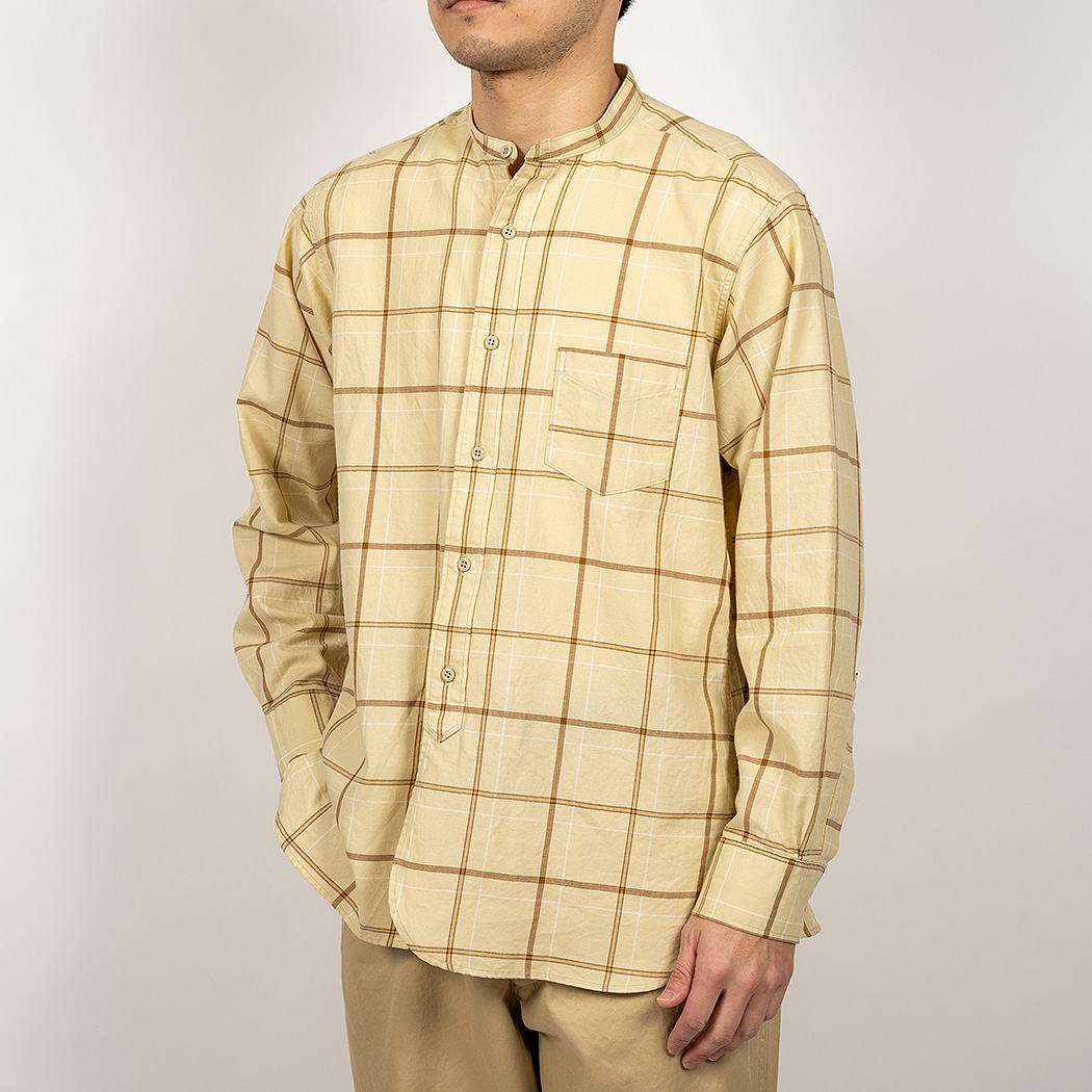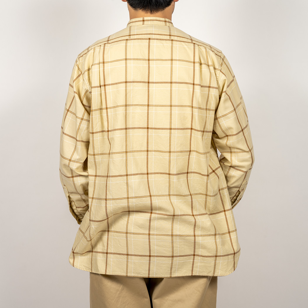 Band Collar Shirt, Check Twill