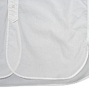 チェックだけがツイル(綾織り)3.7 オンスで、ブロードの平織りとは風合いが違う。綾織りはドロッとドレープが出る、対して平織りはパリっと硬い。 秋冬最初の納品なので、少し薄手の生地で通年着られるシャツ。暑い時期は一枚で、裾を出して。少し涼しくなってきた ら上に何か羽織る。アメリカの古い映画見ていると、バンドカラーにベストという組み合わせもよく見ます。 |