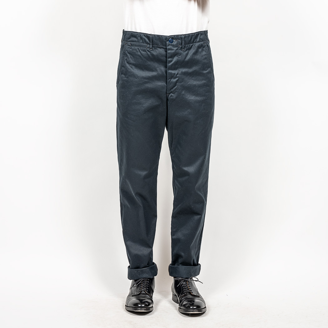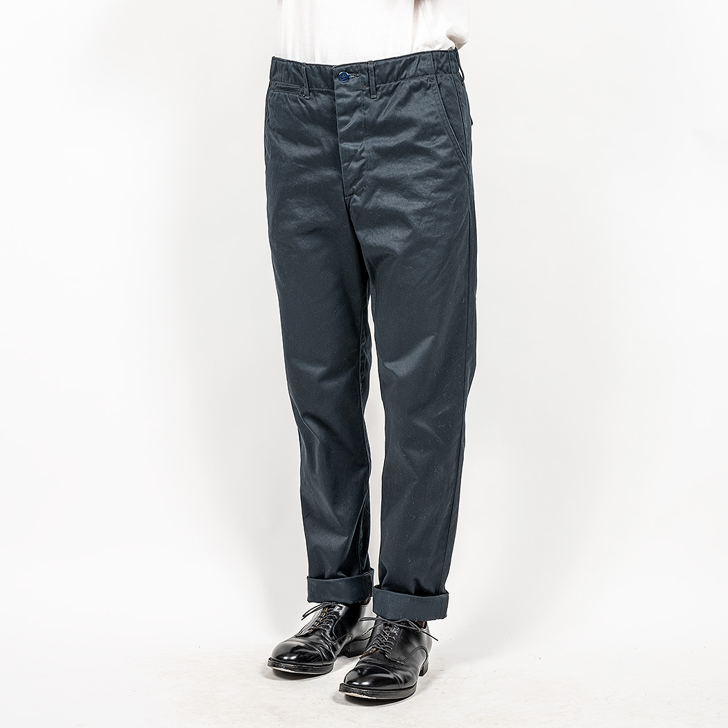 おなじみ、古今様々なチノパンを混ぜて作った Workers Officer Trousers。
