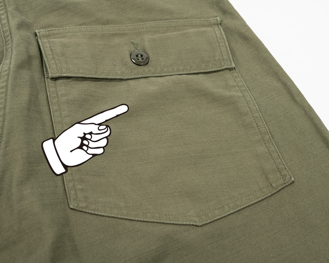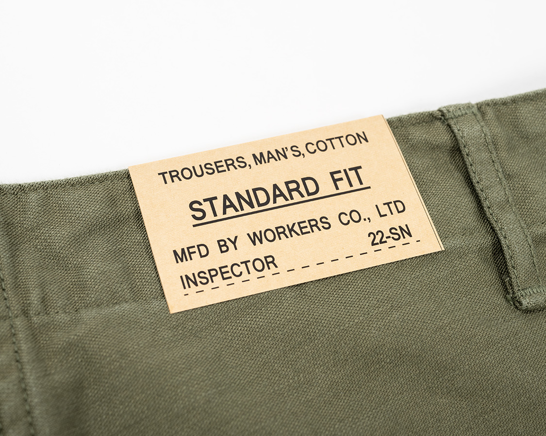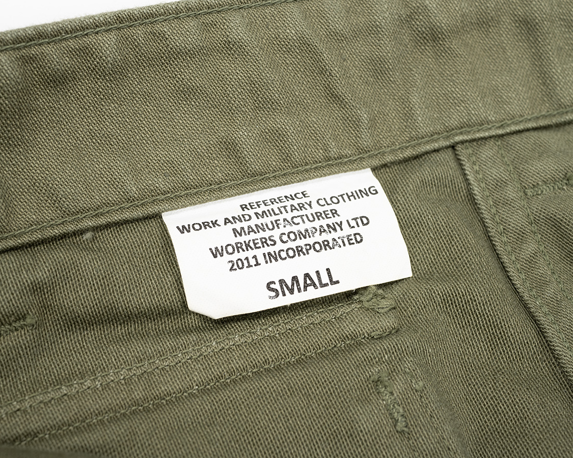 腰裏に流し込むサイズ兼ブランドネーム。ミリタリー風のデザイン。