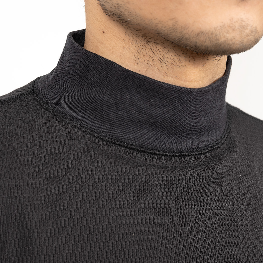 秋口には一枚で着て、上に USN Shirt Jacket のような軽い羽織りもの。もっと寒くなれば、モックネックを Outdoor Shirt のインナーに。年取ると、「首」がつく部分は暖かくしていたほうが具合が良い。首は年齢がもろに出るので、そこ をうまく隠しながらちょっと洒落た感じにも見えるモックネックはお勧め。だた、モックネックの難しさは「きつすぎる と苦しくて気持ち悪い」「緩すぎるとだらしなく見える」。ちょっと伸びたモック、若い子がしてるとそれはそれでカッコ イイのですが、おじさんがしてるとう〜ん。そのあたり、型紙・リブの素材で調整しています。