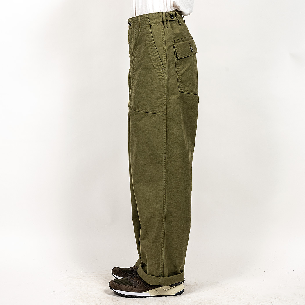 軍パンと言えばOD、でも定番のバックサテンとはまた違う生地でちょっと雰囲気を変えてみたくもありました。