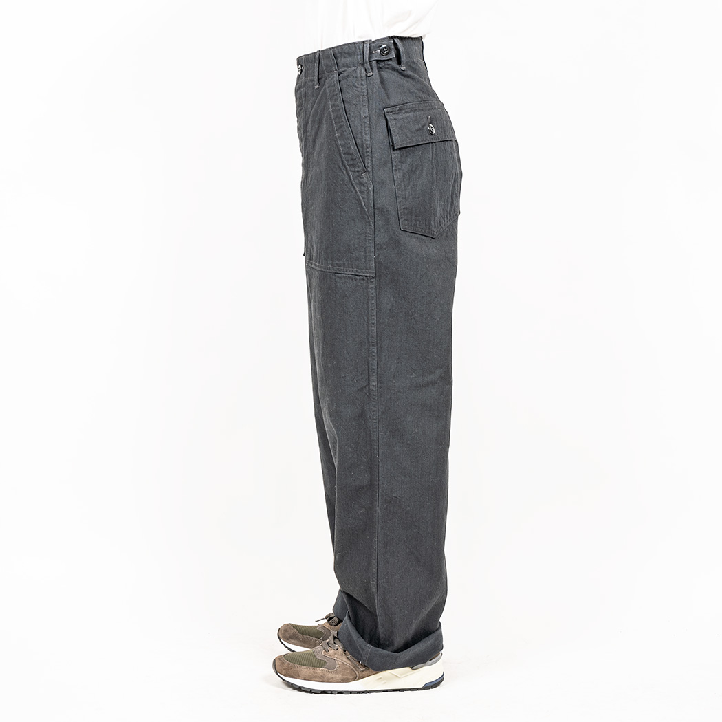 具体的には、解体したデッドストック、MIL-T-838Dからトレース。太い裾、広いワタリ、深めのまた上。いわゆる「軍パン」のシルエット。