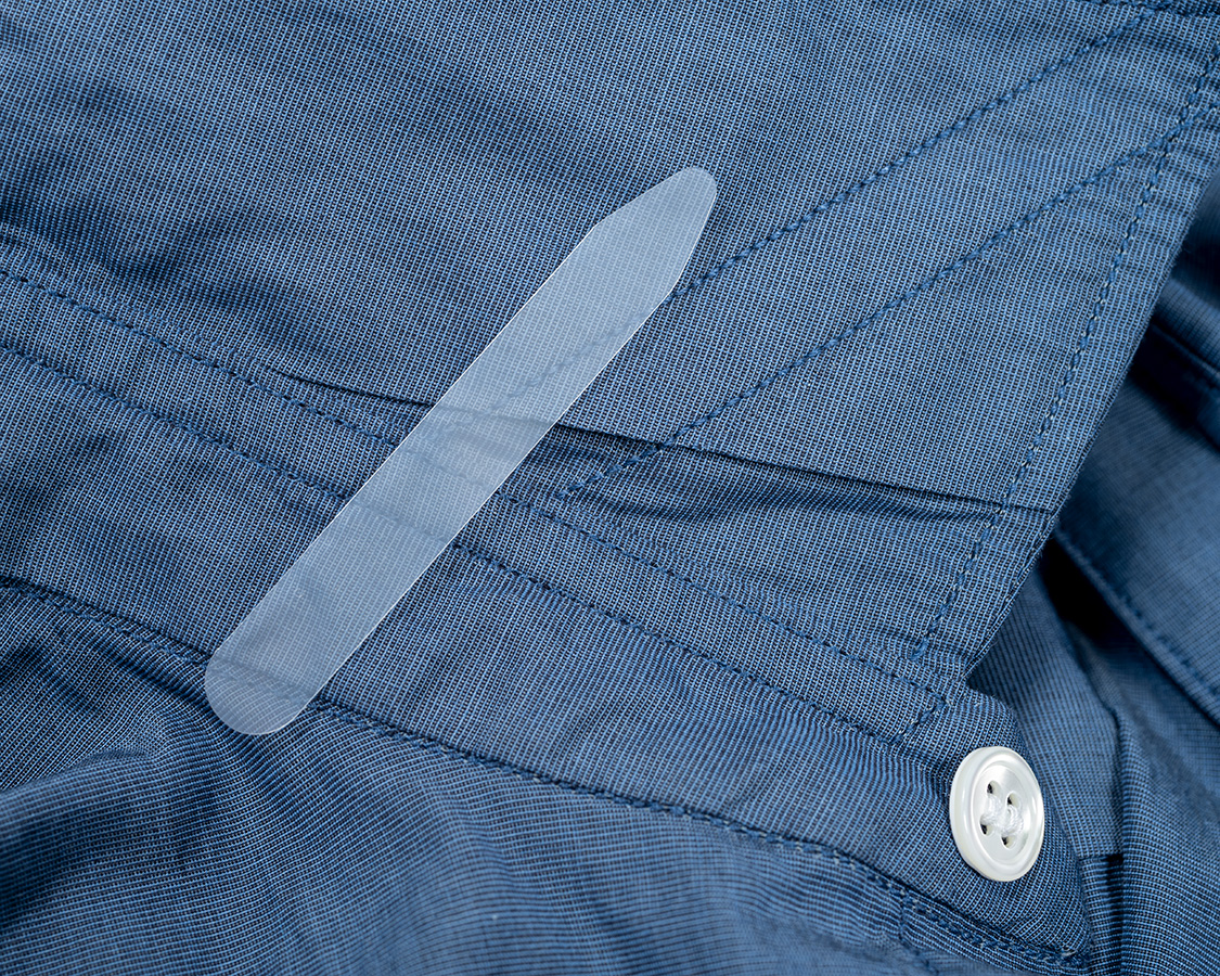 秘訣はカラーステイ。襟先に向かって裏に一部穴が開いていて「ステイ」と呼ばれる棒状のパーツが入ります。選択の時は抜いてください。