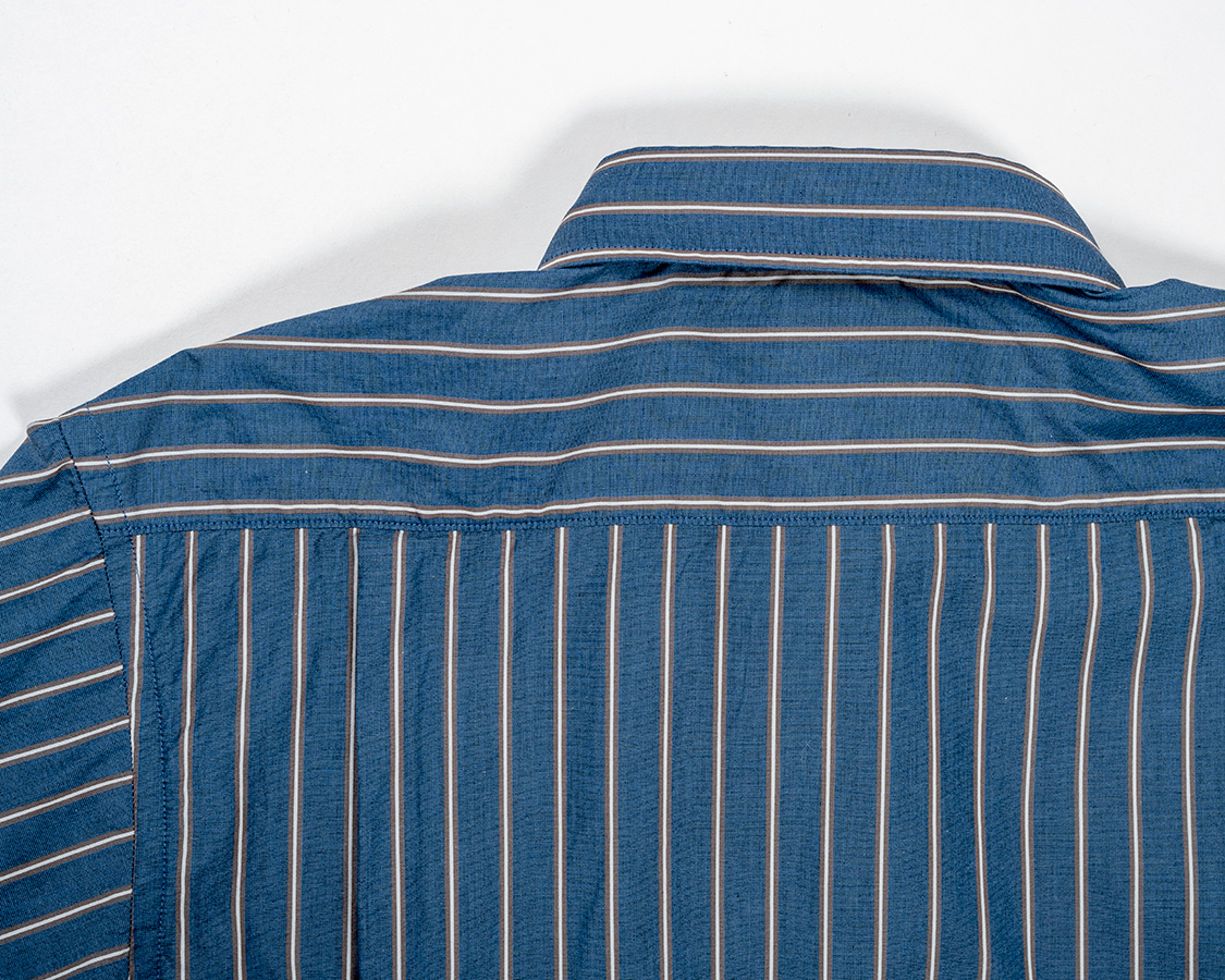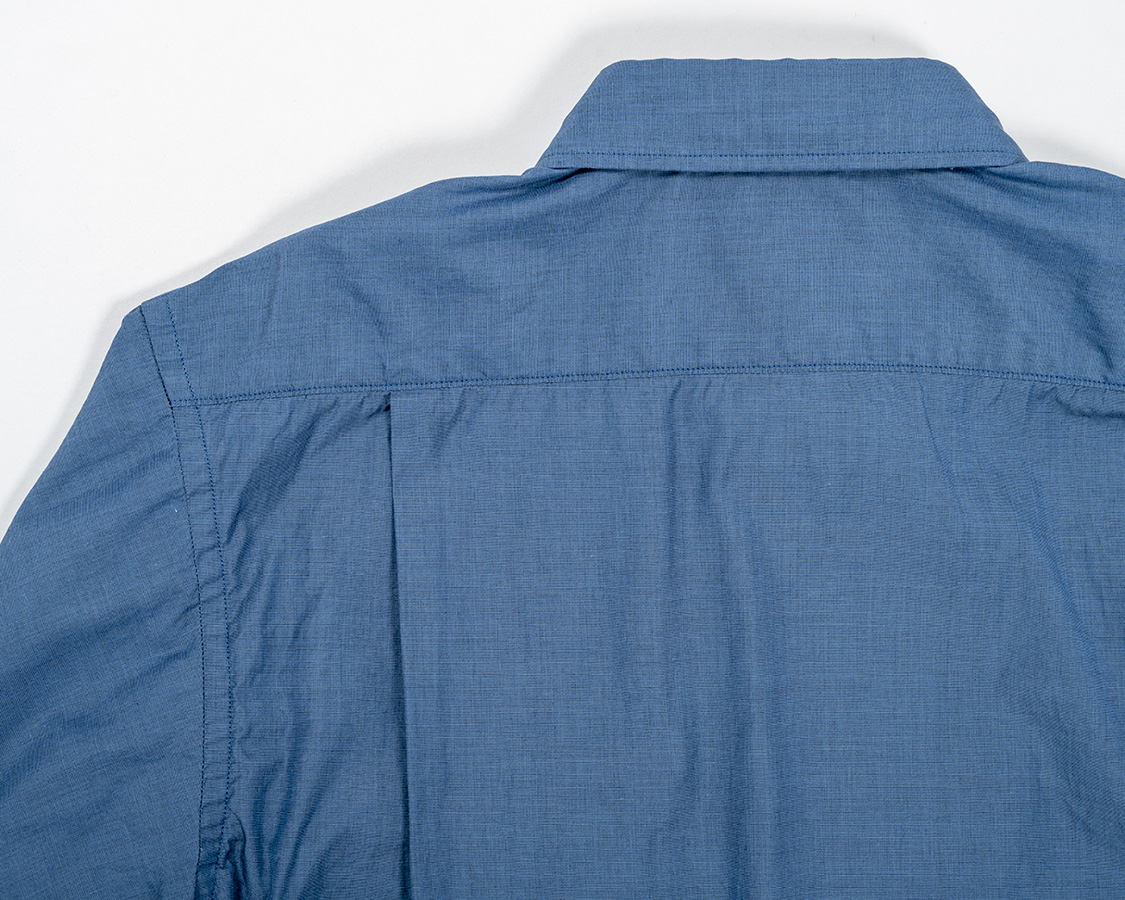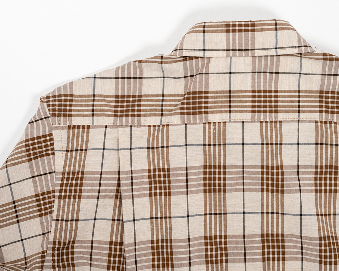 背面、タックはサイド。ヨークは押さえステッチあり。