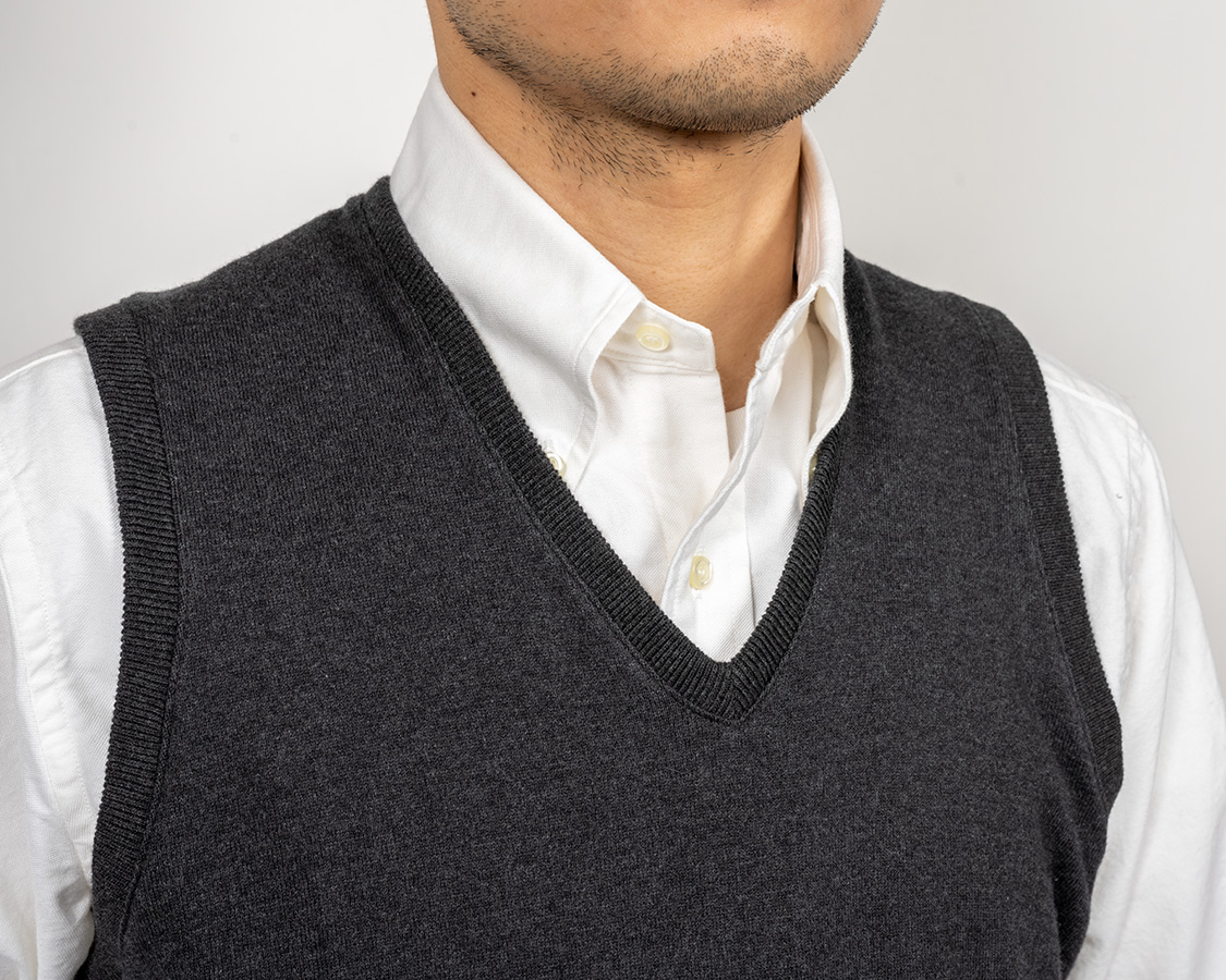 深すぎず、ネクタイをしたらちょうどよく見えるぐらいのフロント。(と言いながら、ネクタイした写真を撮り忘れてすいません)