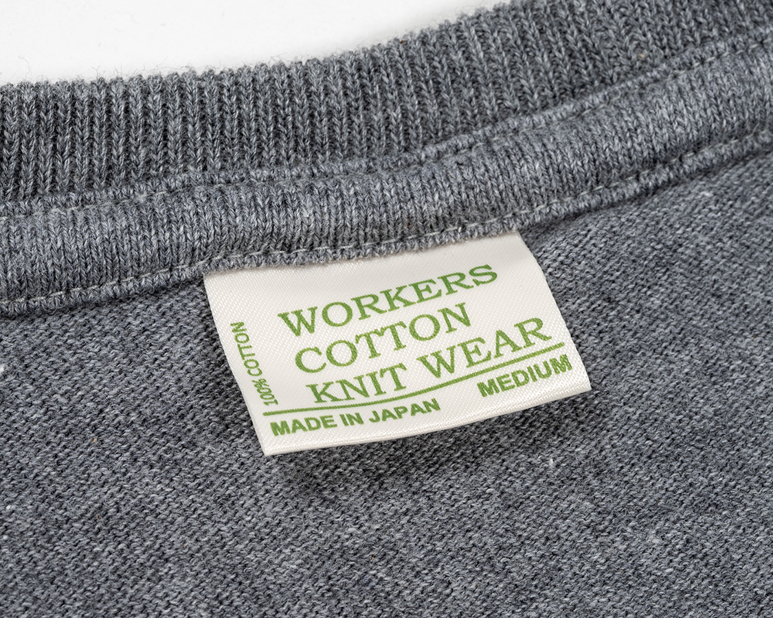セーターのようでセーターではない。カットソーならではの部分がこの「タコバインダー」。肩からネック、逆の肩まで。伸び止めにパーツを裏から縫い付けています。
