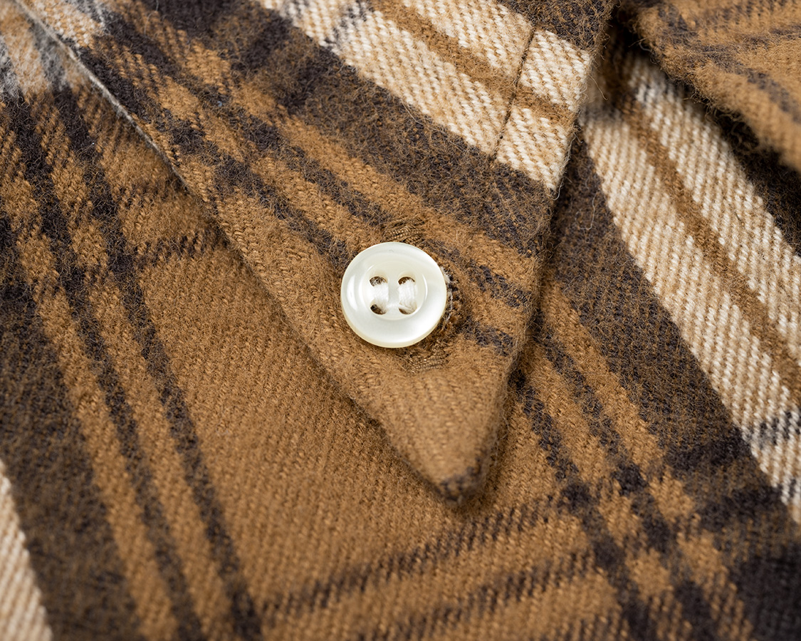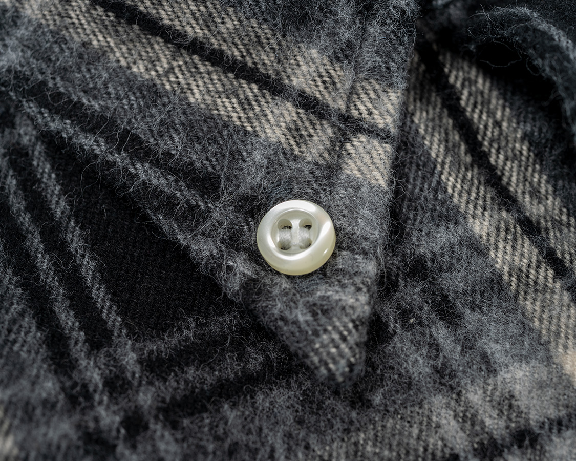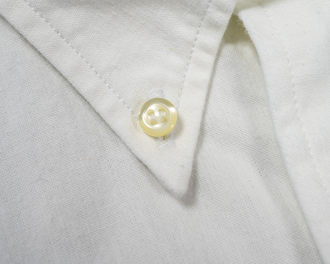 羽襟先ぎりぎりにあいたボタンダウンのホール。これが簡単そうで難しい。