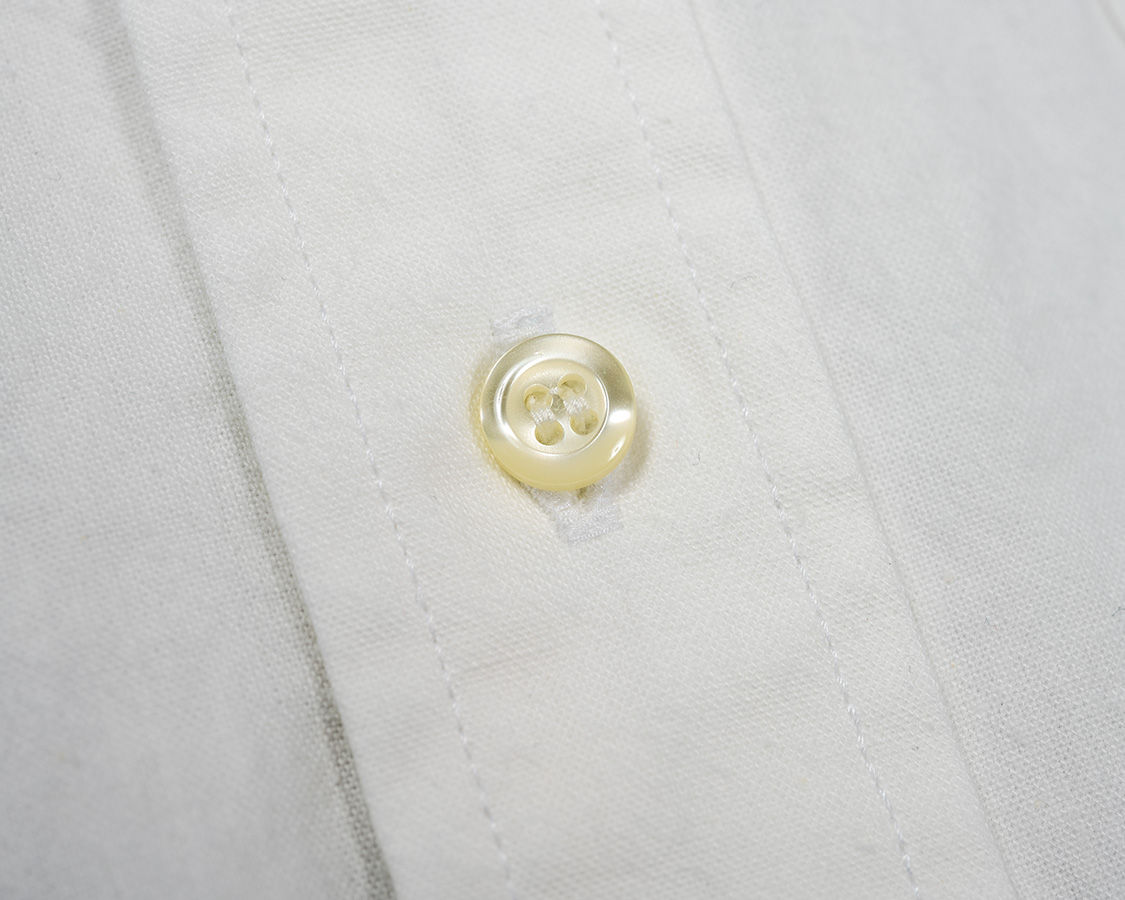 ボタン、ポリエステルの耐衝撃ボタン。洗濯機で洗ってもまず欠けません。