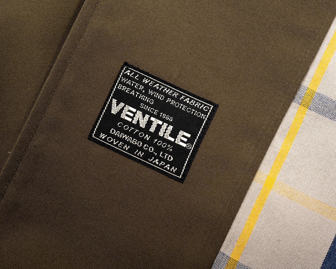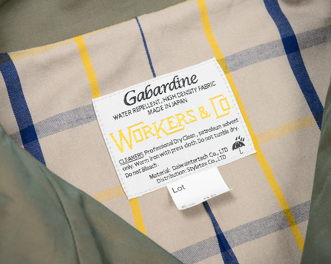 ネームはそれぞれ違います。今回使ったベージュのギャバは西脇産。オリーブは私の生まれ故郷、埼玉産。ベンタイルはそれ専用の生地ネーム。同じ撥水生地でも、それぞれ産本が違うのでそれがわかるよう、ネームが違います。