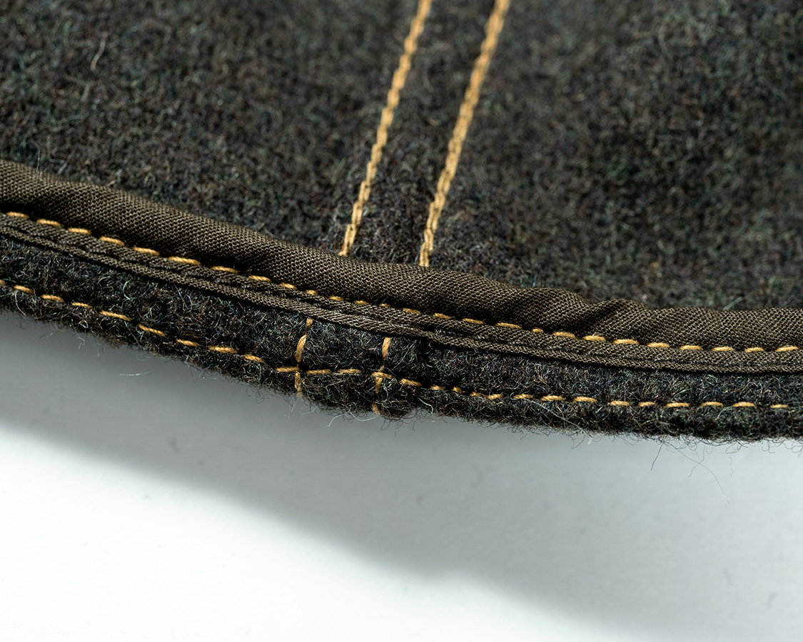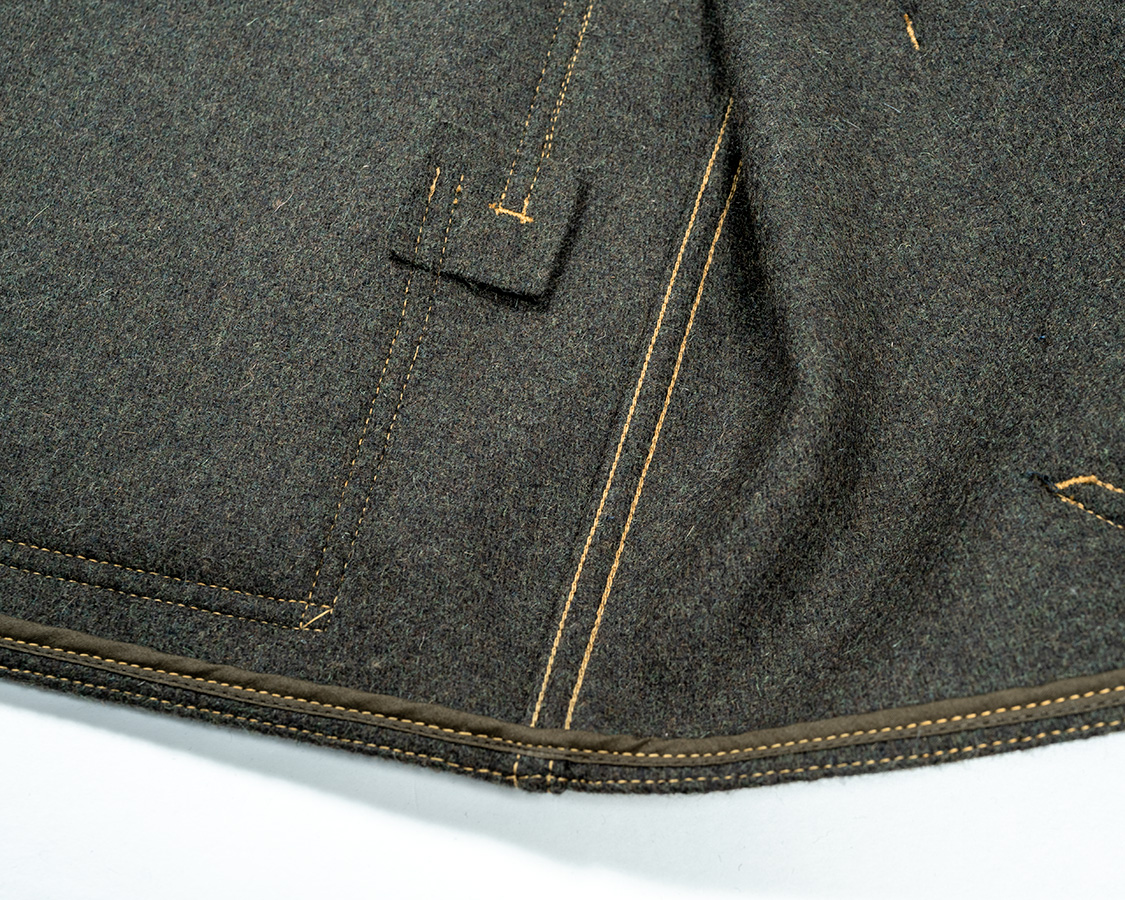 裏裾始末。オリジナルは断ち切りをそのまま使ってますが、WORKERSではパイピングをして始末。