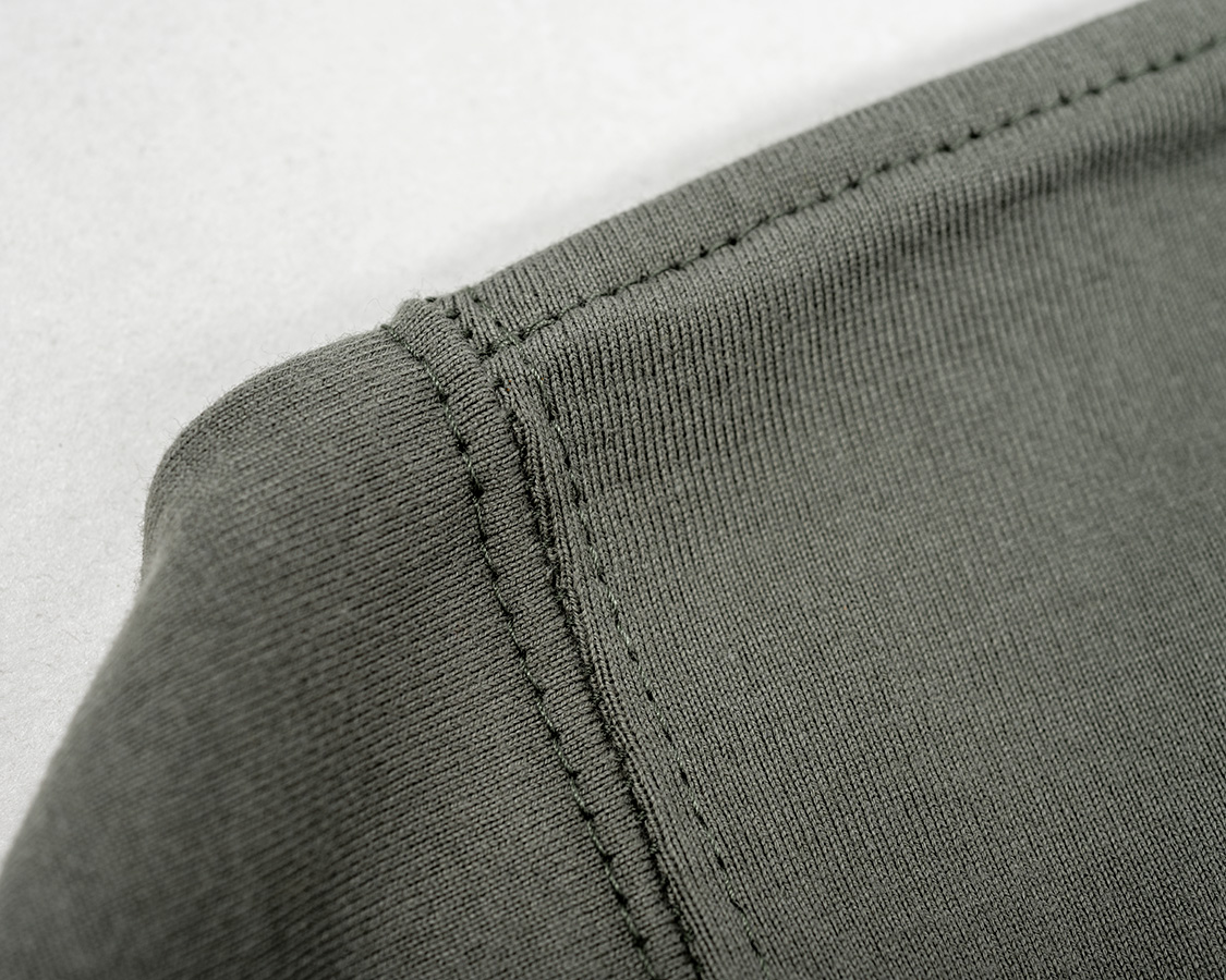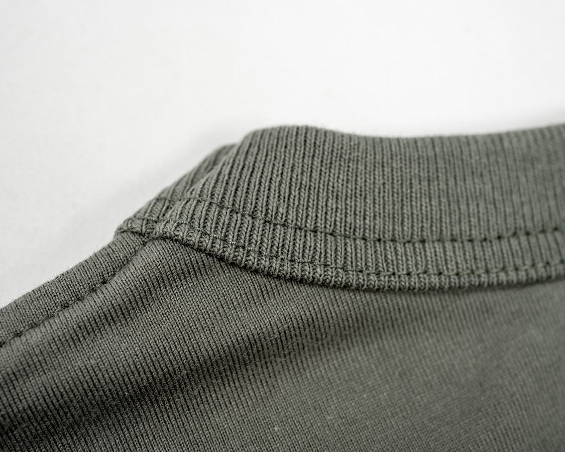 肩と首リブのつなぎ目。肩の縫い目は倒してステッチ。縫い合わせは出来る限り縫い目がゴロゴロしないように、先ほどのマタギで始末したり、肩倒ししたり、始末をしています。